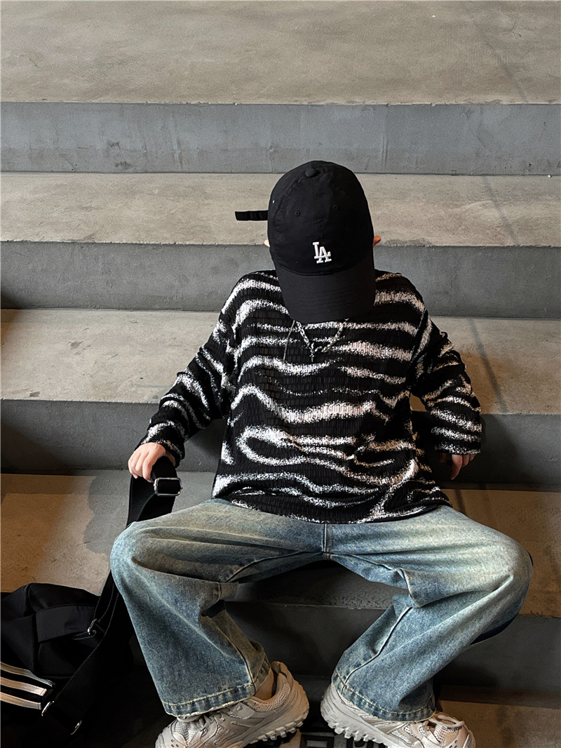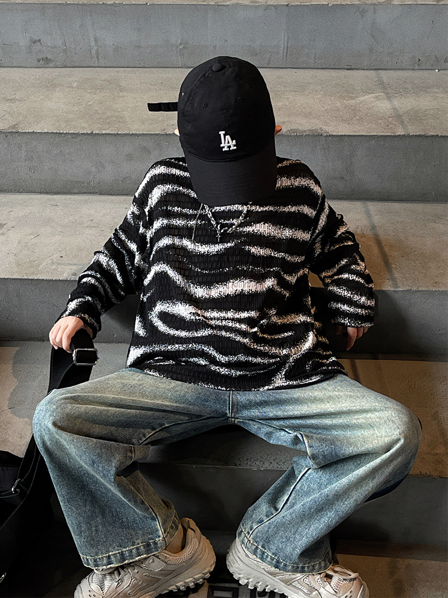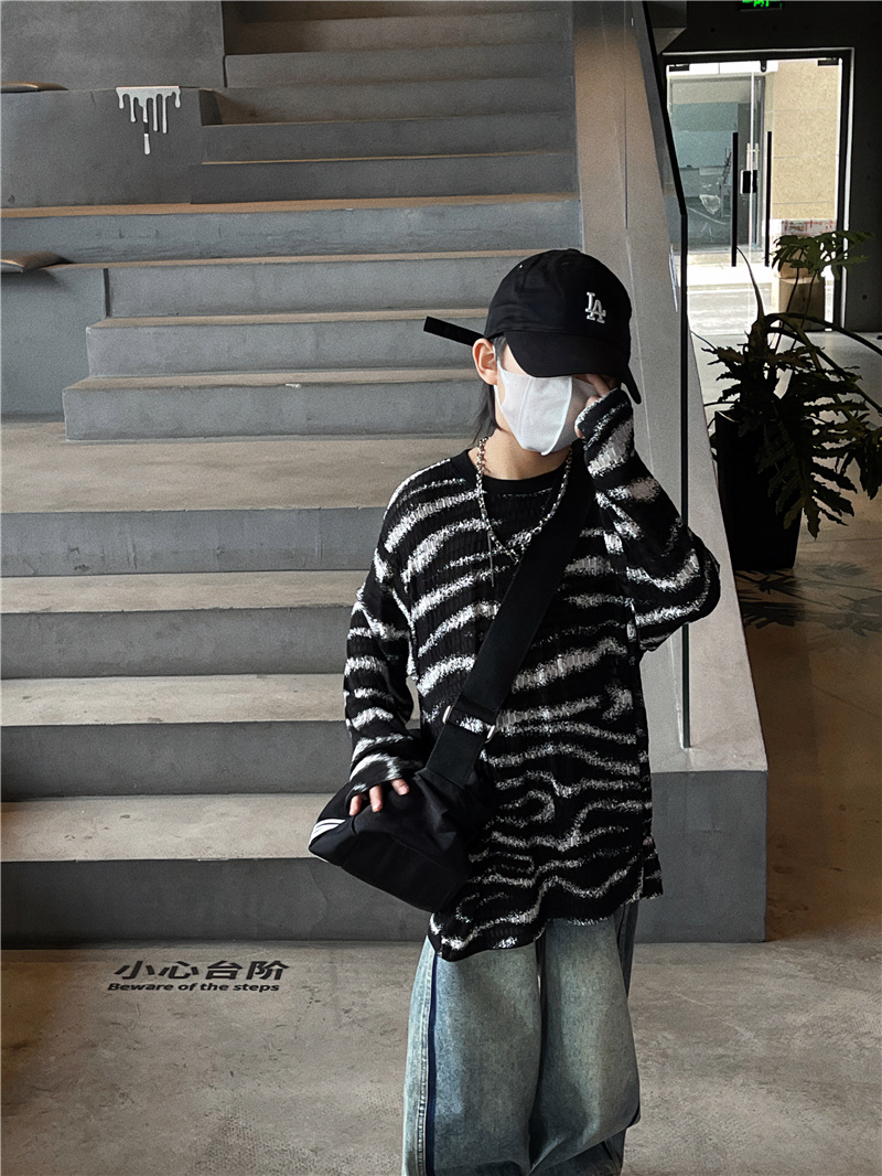 Baoduo 아동복 소년 가을 줄무늬 긴 소매 티셔츠 2023 새로운 옷 아기 가을 한국 외국 스타일 탑