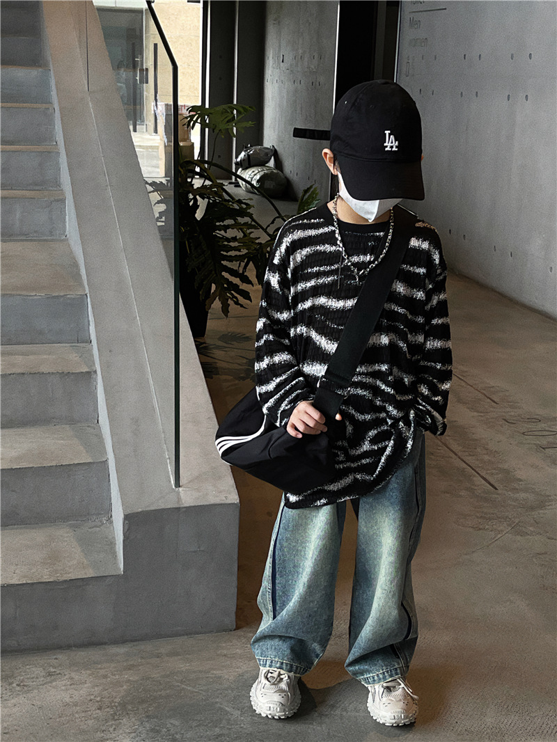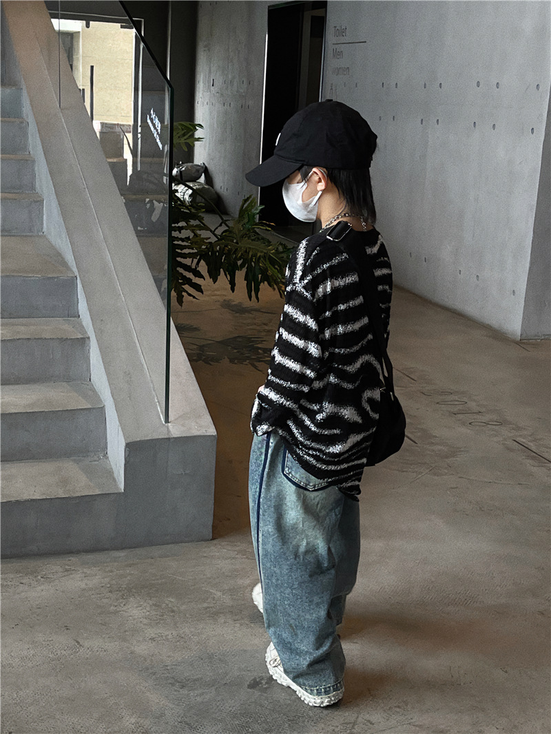 Baoduo 아동복 소년 가을 줄무늬 긴 소매 티셔츠 2023 새로운 옷 아기 가을 한국 외국 스타일 탑스토어 가기