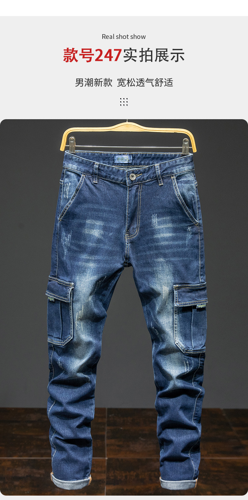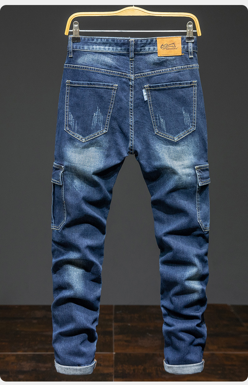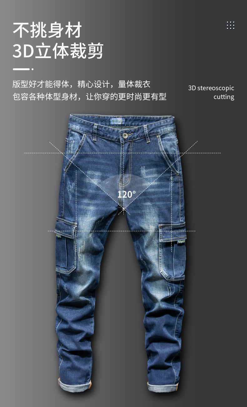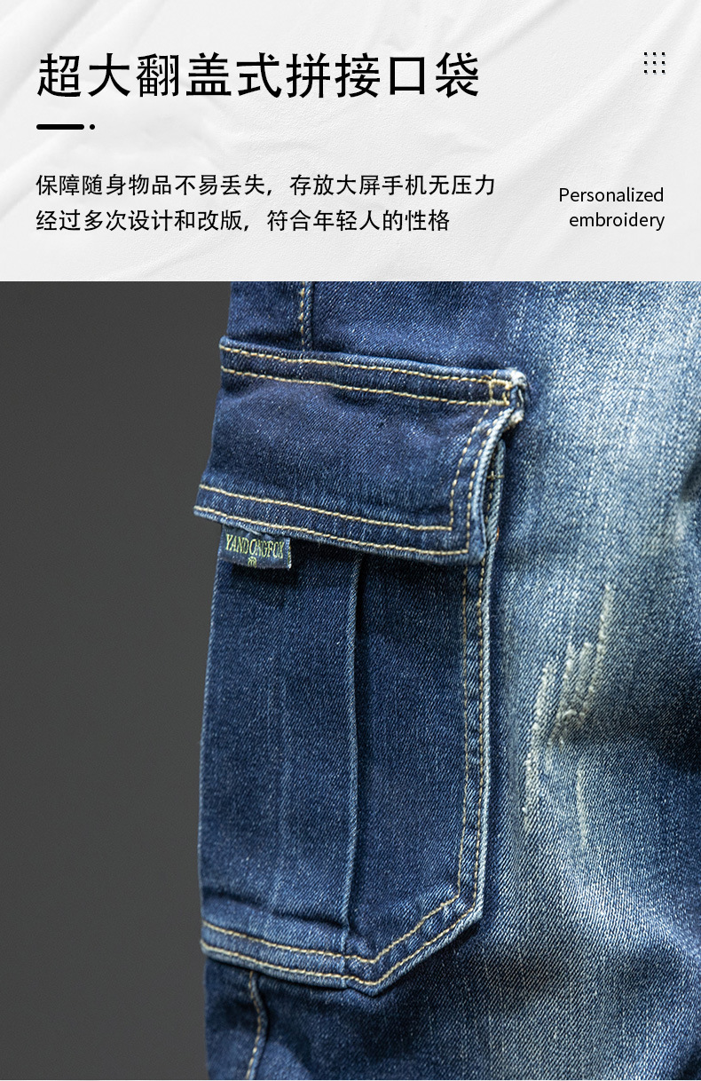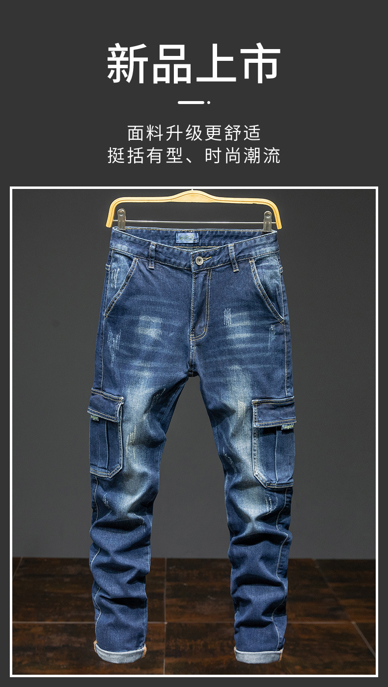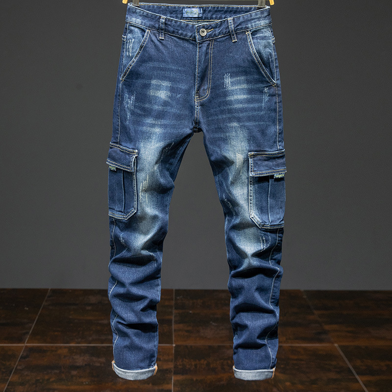 멀티 포켓 크록 청바지 남성용 밀리터리 바지 남성용 느슨한 내마모성 스트레치 청바지 남성용 플러스 사이즈 스트레이트 팬츠스토어 가기