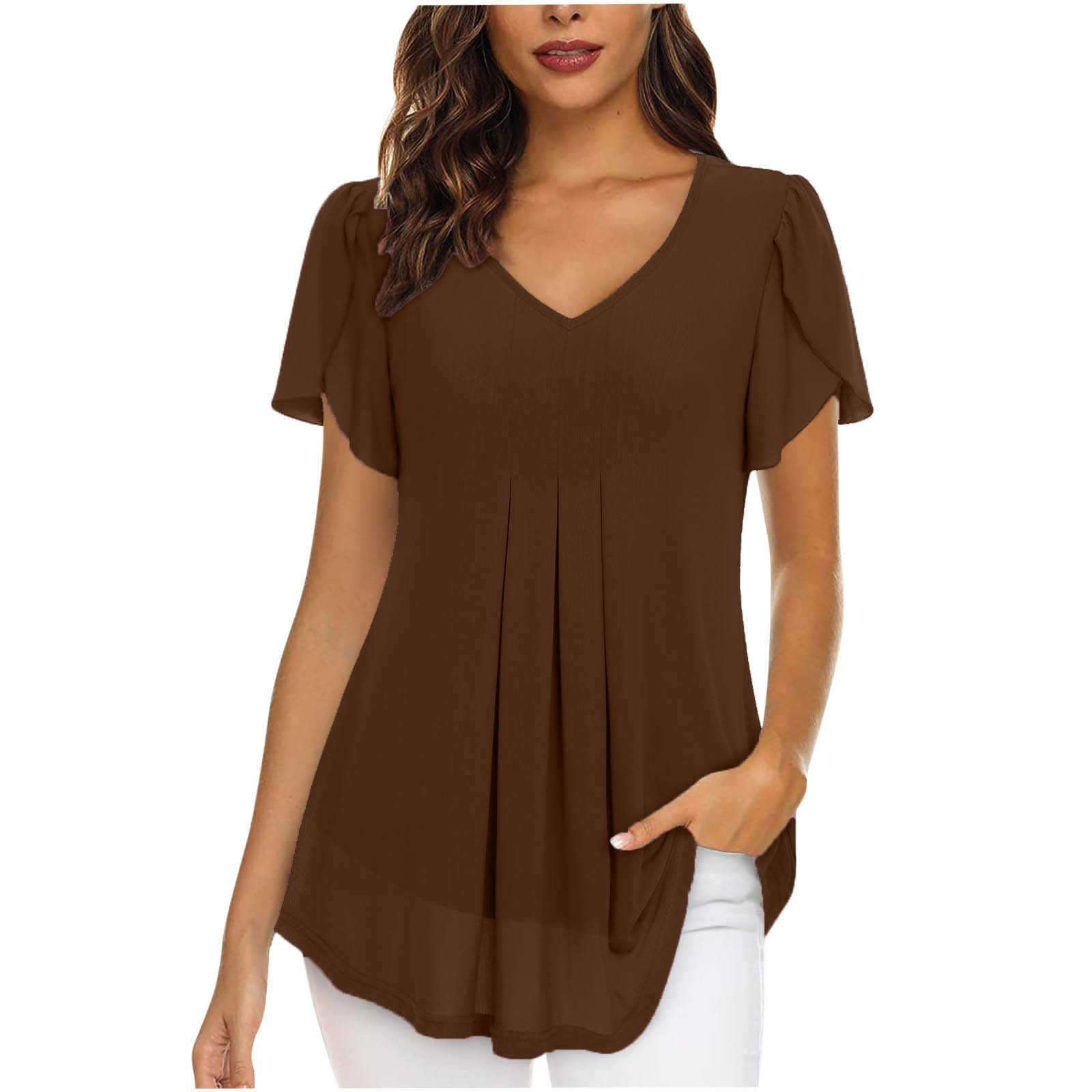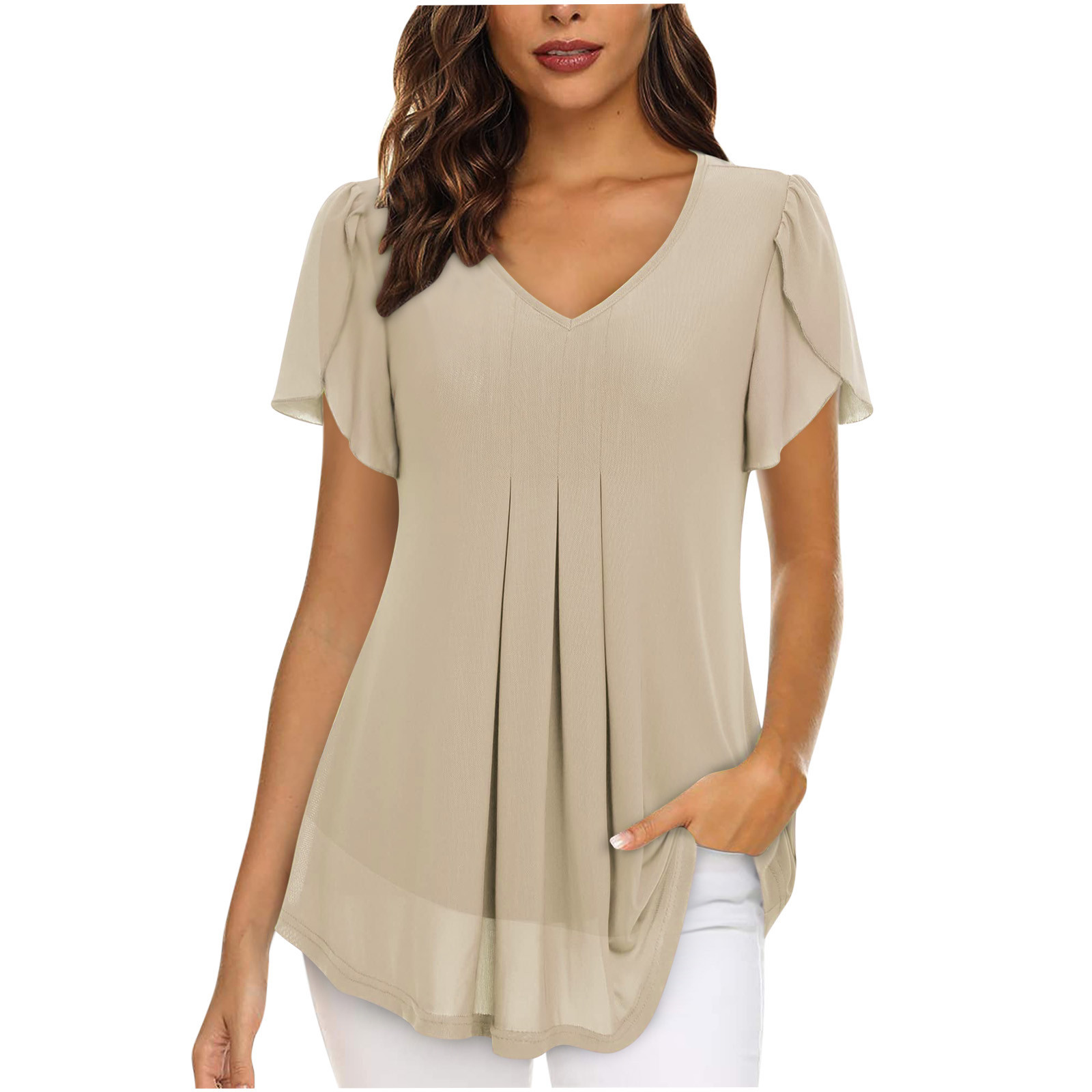 유럽과 미국 2023 여성 패션 쉬폰 셔츠 꽃잎 반팔 튜닉 탑 여름 캐주얼 티셔츠스토어 가기