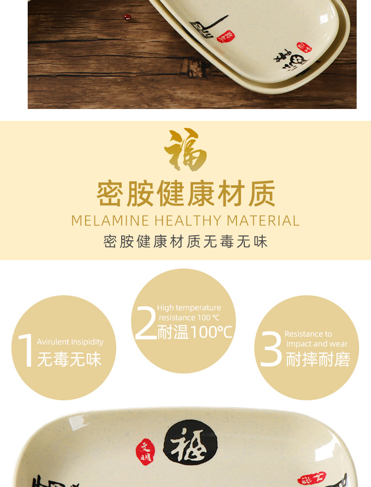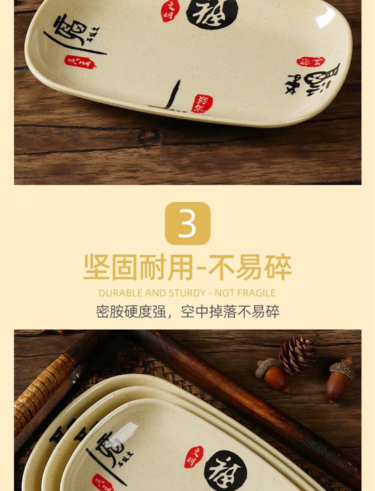 쌀 롤 접시 직사각형 상업용 멜라민 모조 도자기 접시 특수 식기 플라스틱 냄비 바베큐 간식 밥 롤 접시스토어 가기