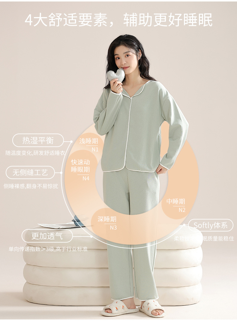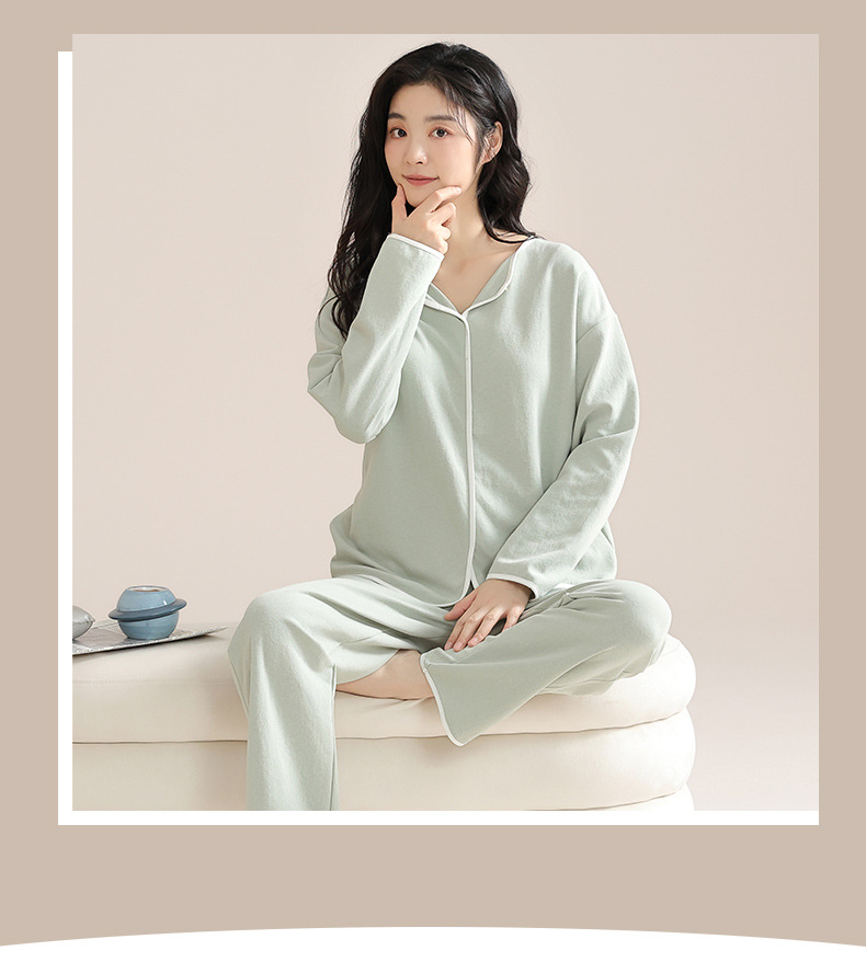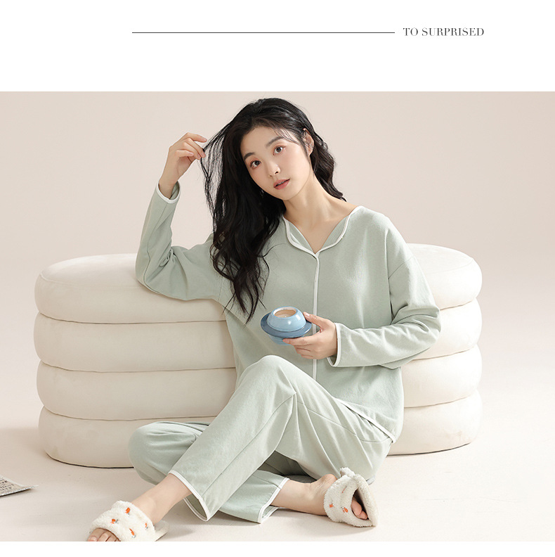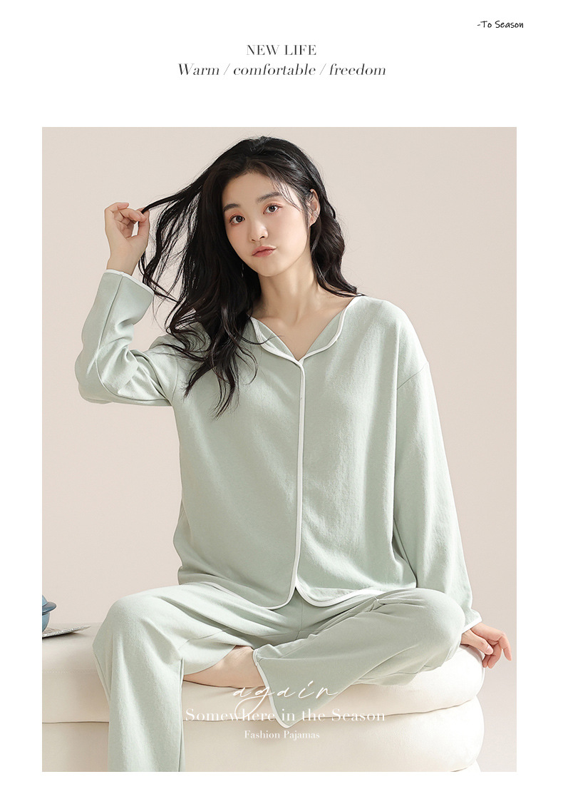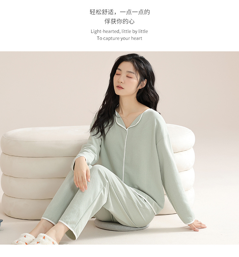 여성용 유방 패드 잠옷 봄, 가을 순수 코튼 긴팔 얇은 섹션 2023 새로운 단순 플러스 사이즈 소녀 홈웨어 세트스토어 가기