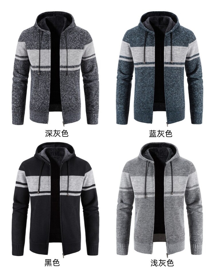 해외 무역 도매 2023 새로운 봄과 가을 시즌 남성 후드 니트 카디건 재고 컬러 매칭 매일 통근 바람스토어 가기