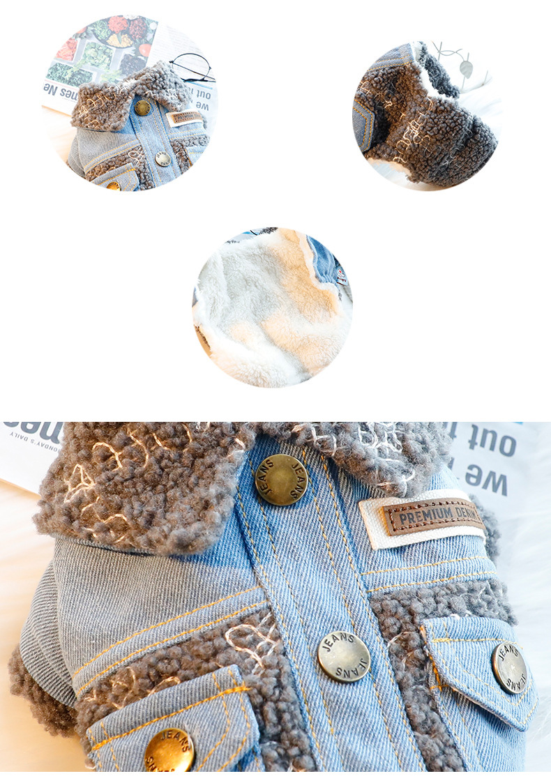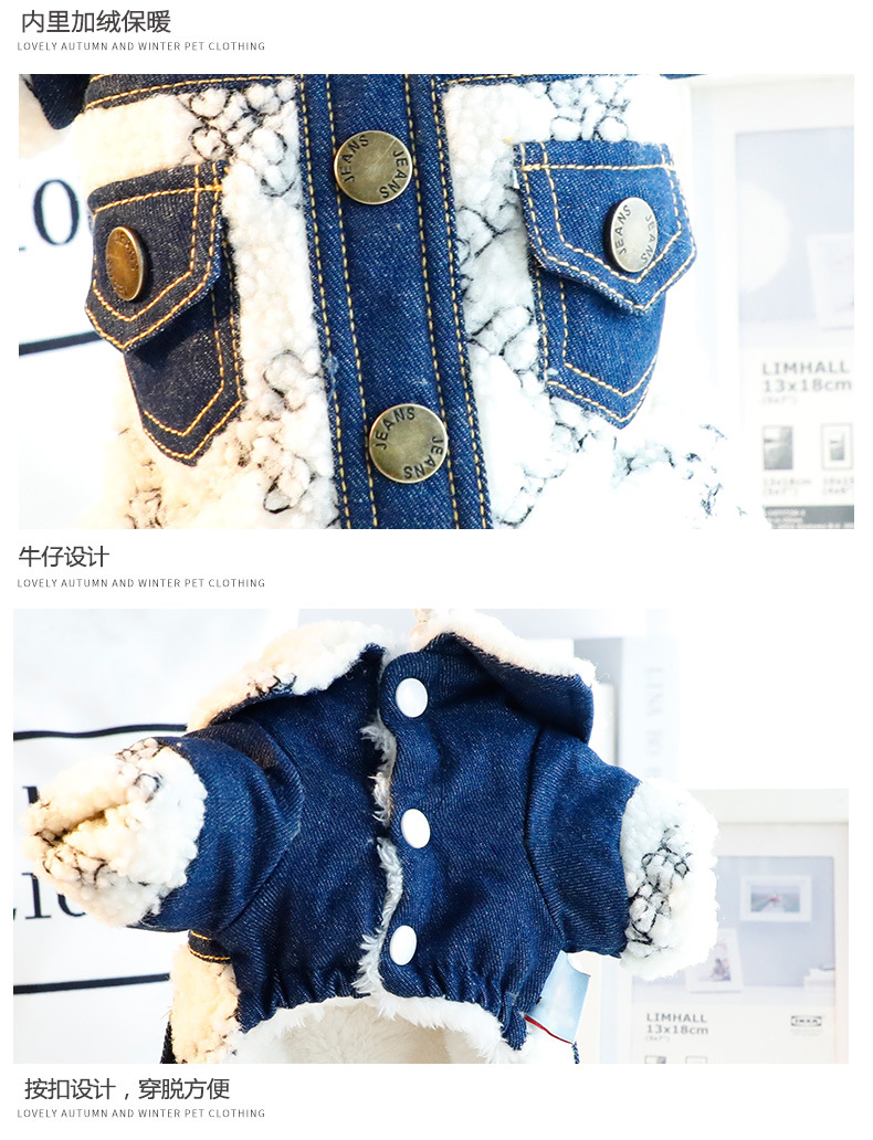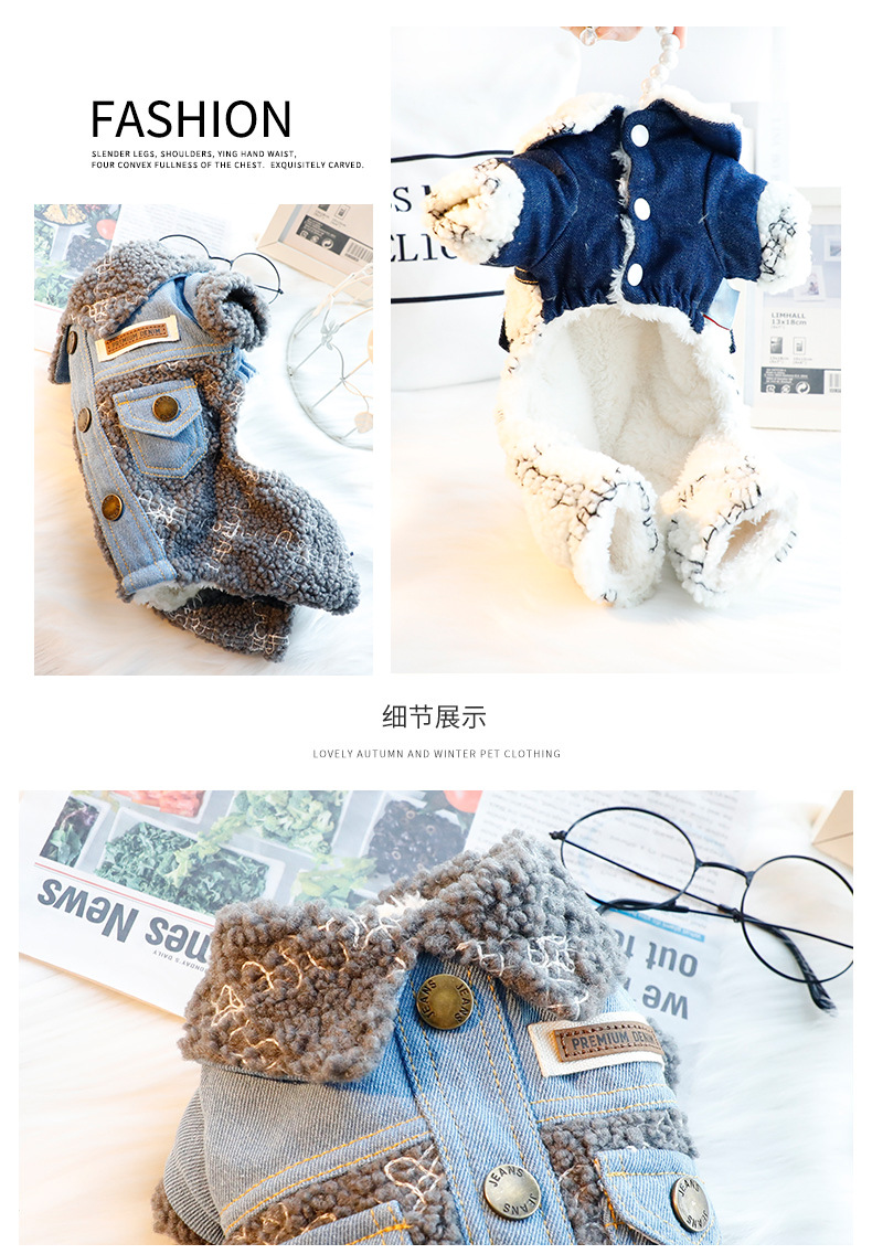 개 옷 가을과 겨울 두꺼운 양고기 벨벳 데님 수 놓은 네 다리 기모 따뜻한 작은 개 테디 애완 동물 4788스토어 가기