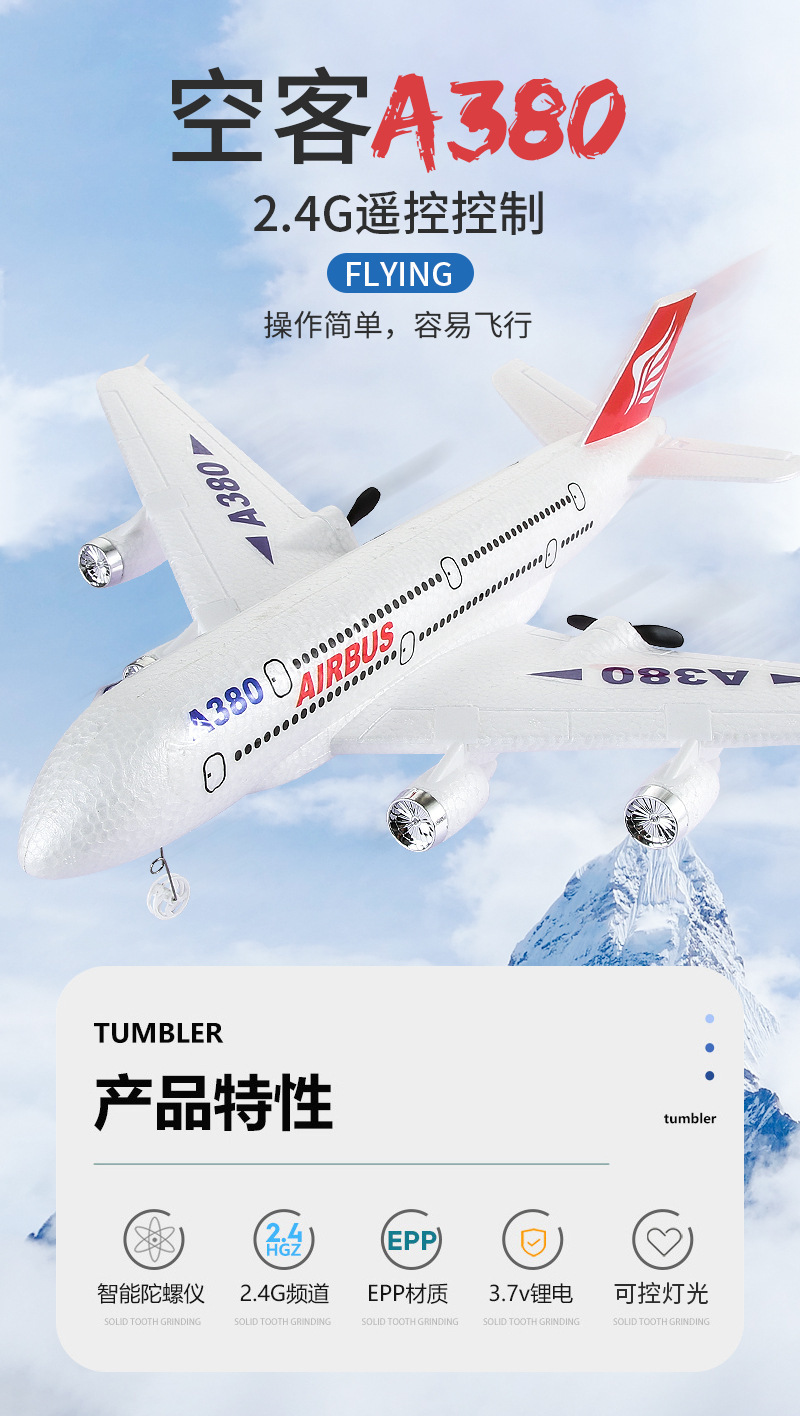 고정 날개 폼 항공기 HW30 원격 제어 항공기 A380 Airbus 2 채널 리어 푸시 듀얼 파워 모델 항공기 글라이더스토어 가기