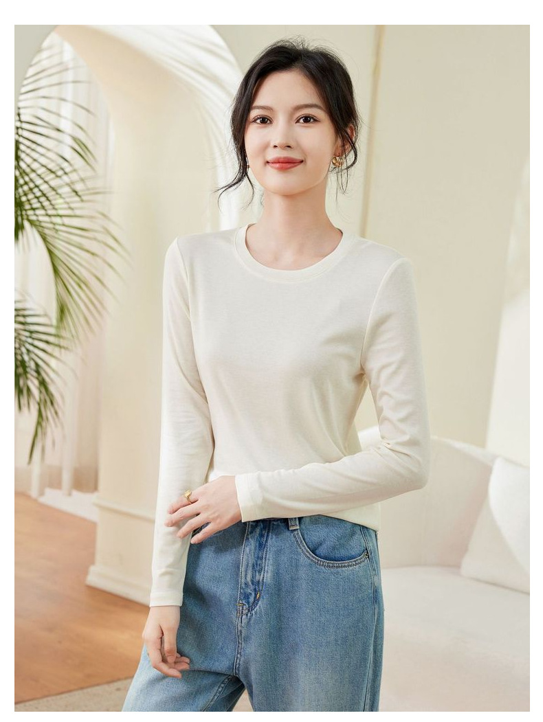 Tencel 아세테이트 여성용 긴팔 티셔츠 라운드 넥 얇은베이스 셔츠 가을 다용도 기본 고탄성 소프트 심플스토어 가기