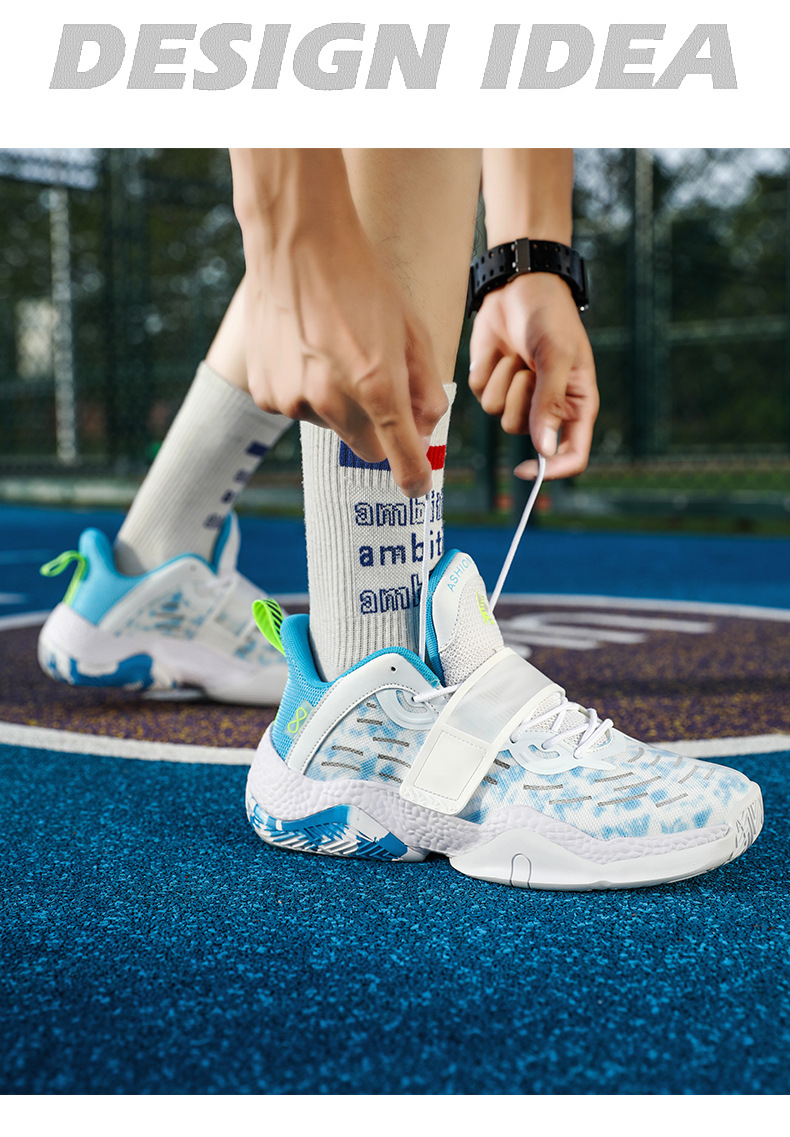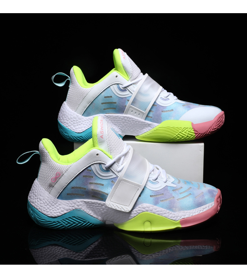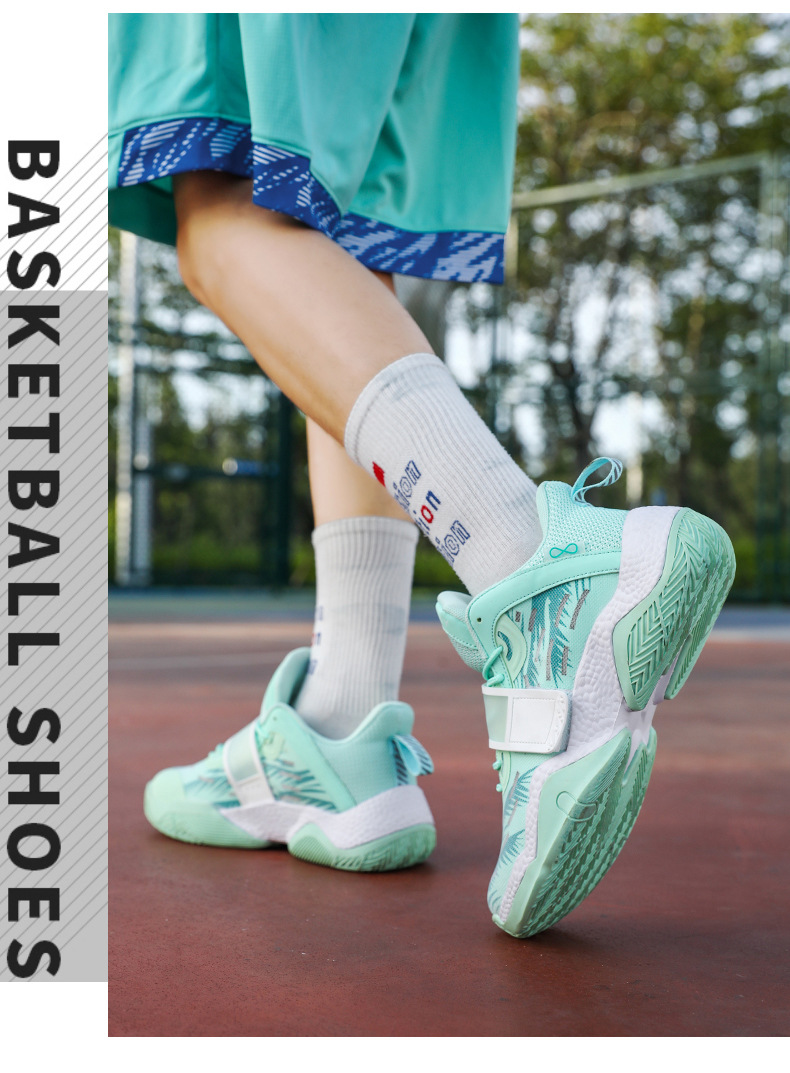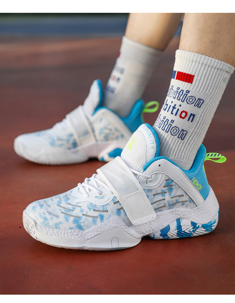 봄과 여름 새로운 대외 무역 농구 신발 청소년 벨크로 메쉬 스포츠 캐주얼 신발 두꺼운 단독 스포츠 신발 훈련 신발