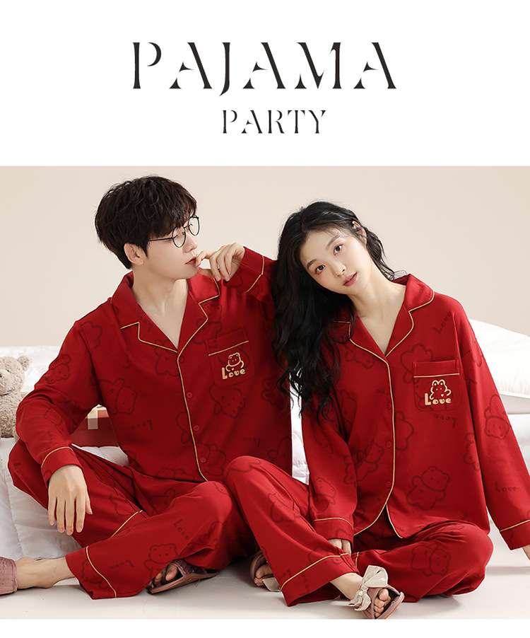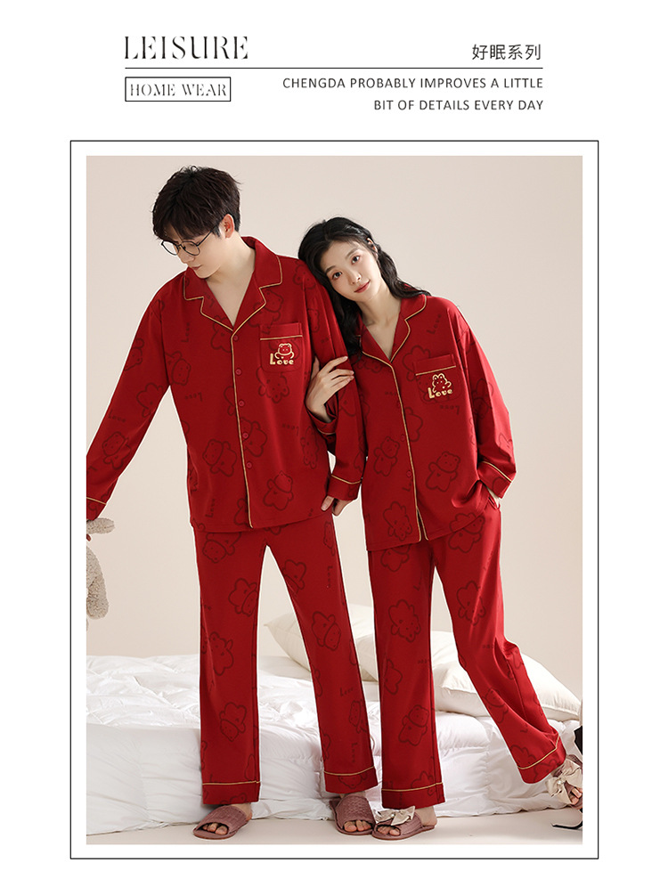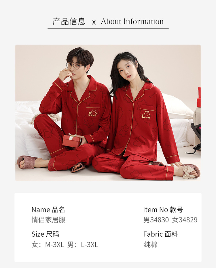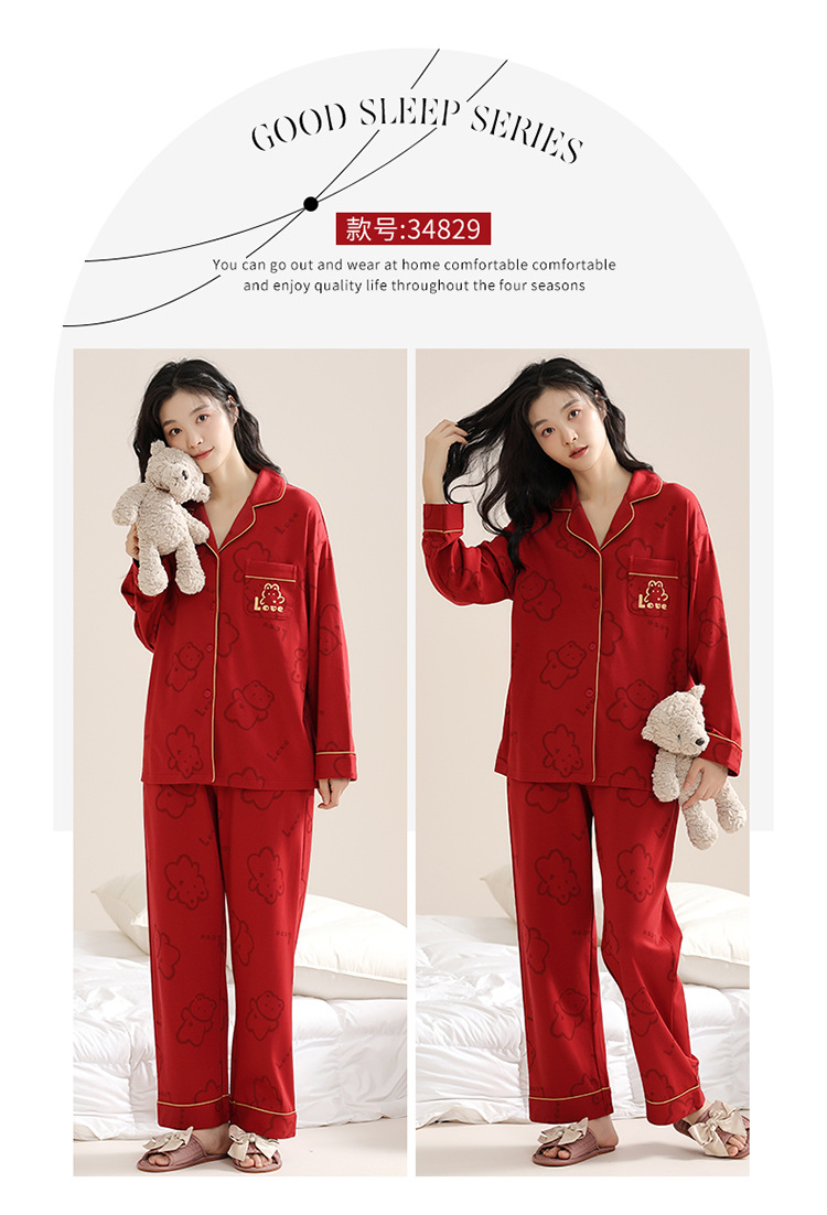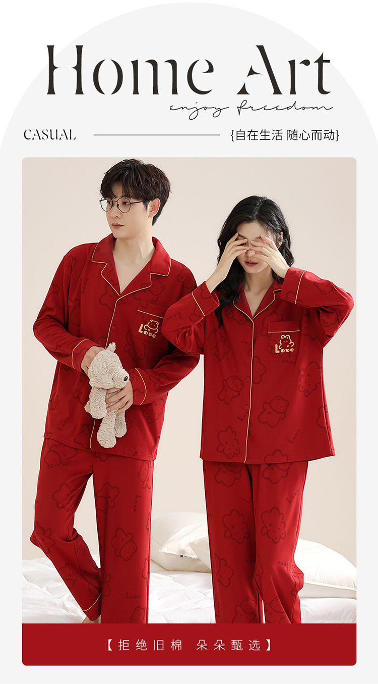 커플 잠옷 여자의 가을과 겨울 면 긴팔 빨간 신혼 남자의 축제 생활 년 가정 의류 세트스토어 가기