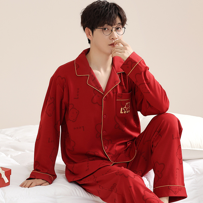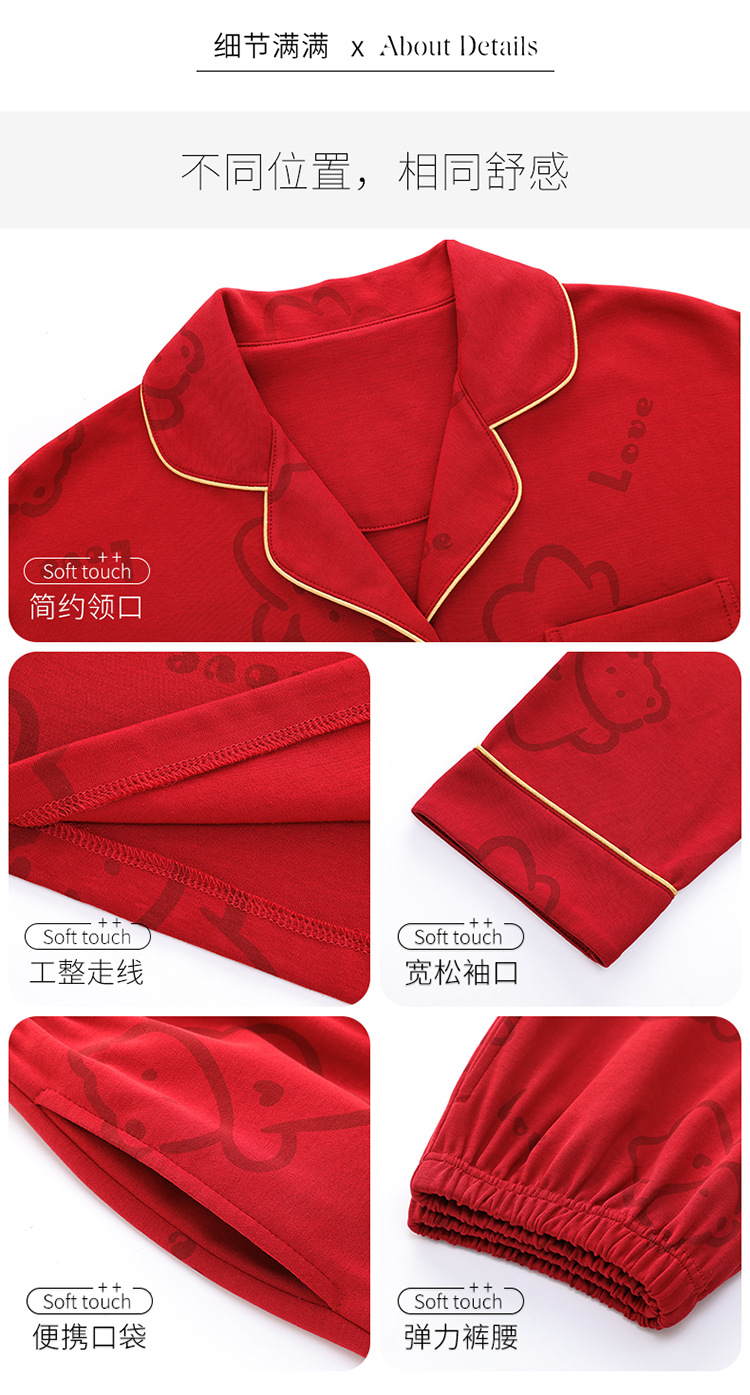 커플 잠옷 여자의 가을과 겨울 면 긴팔 빨간 신혼 남자의 축제 생활 년 가정 의류 세트