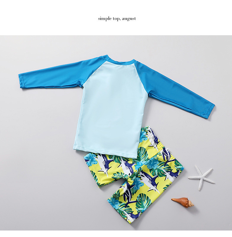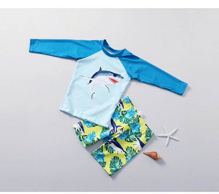 어린이 수영복 소년 자외선 차단제 속건 분할 수영복 소년 초등학생 상어 스타일 온천 수영복