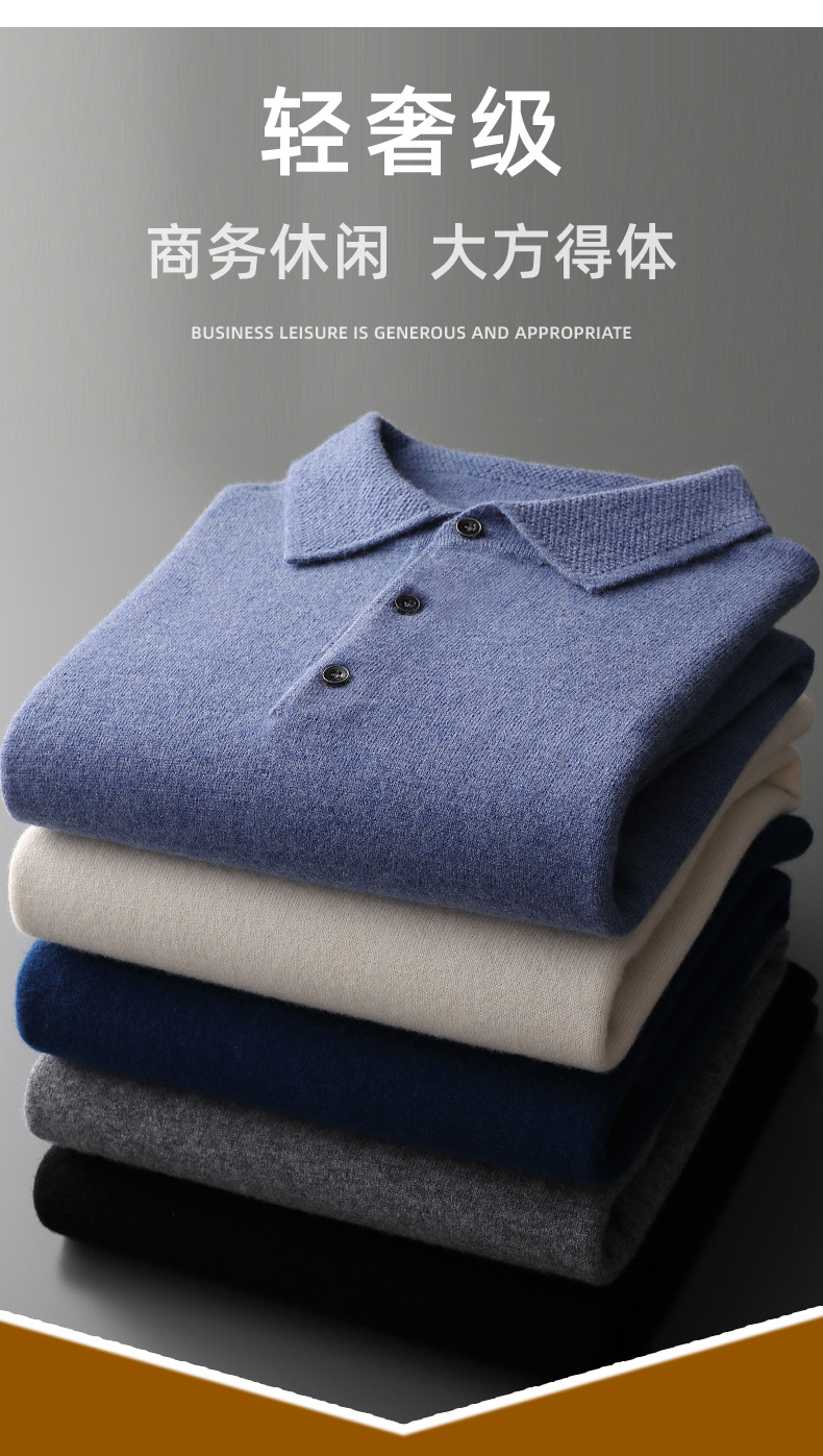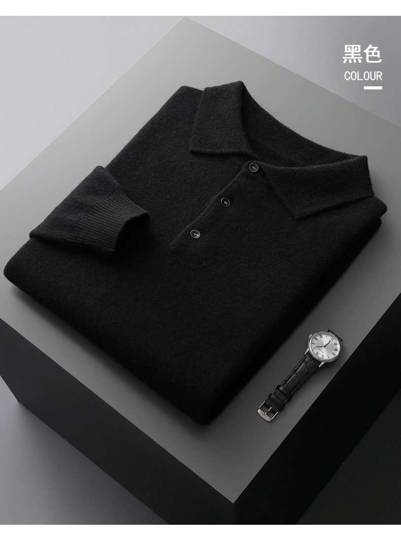 가을과 겨울 100 순수 울 스웨터 남자의 옷깃 폴로 칼라 니트 울 스웨터 탑 단색 울 스웨터 플러스 사이즈
