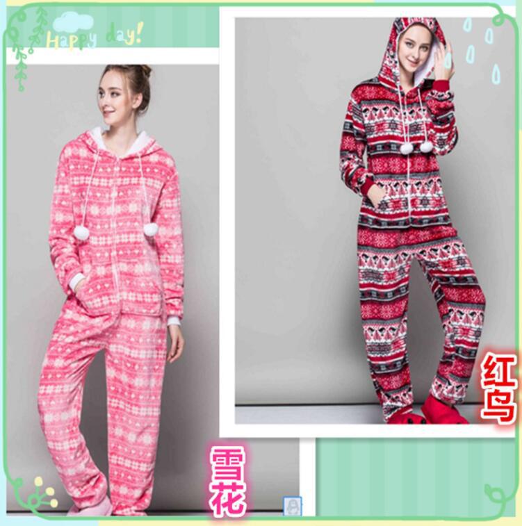빨간 새 눈송이 만화 성인 원피스 잠옷 가을/겨울 플란넬 패딩 따뜻한 가정 옷을 세트 머리카락의 세대스토어 가기