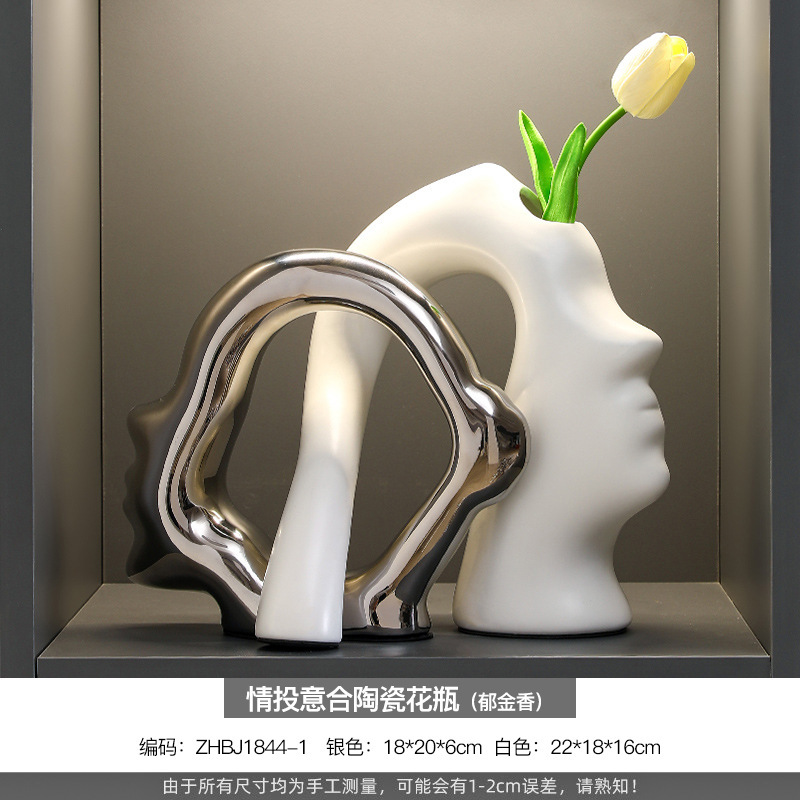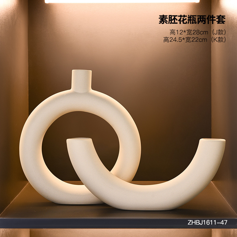 欧式陶瓷纯白甜甜圈花瓶家居客厅样板间软装饰品创意花瓶花器批发