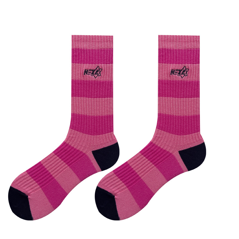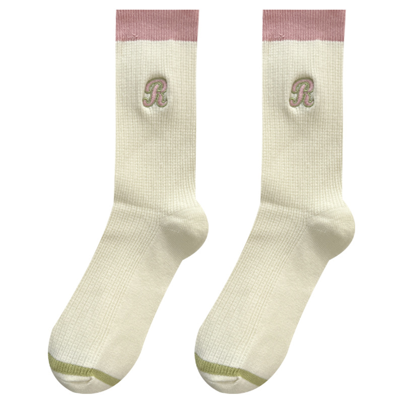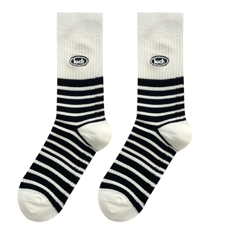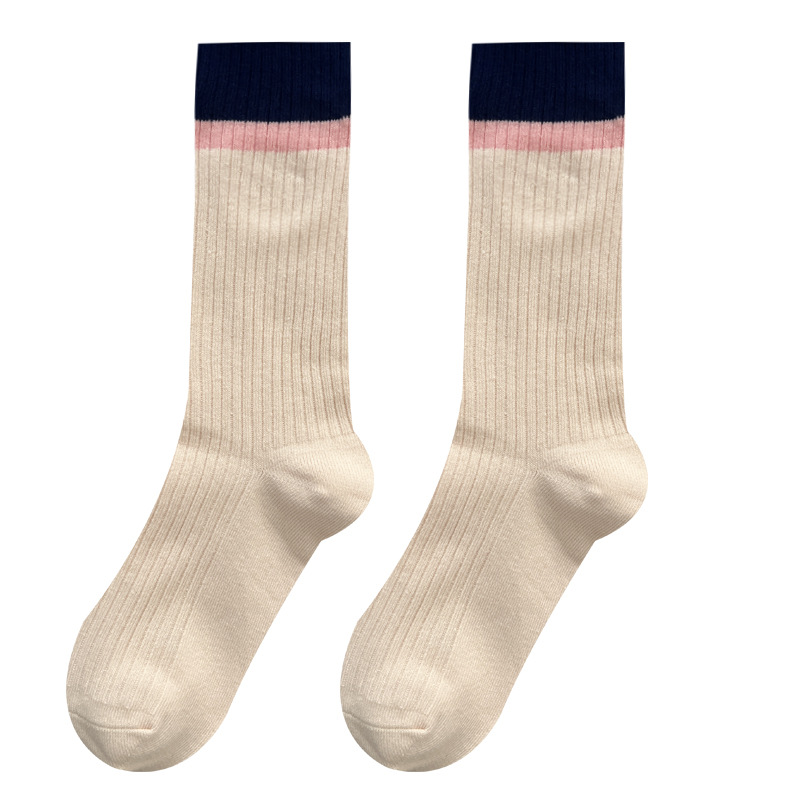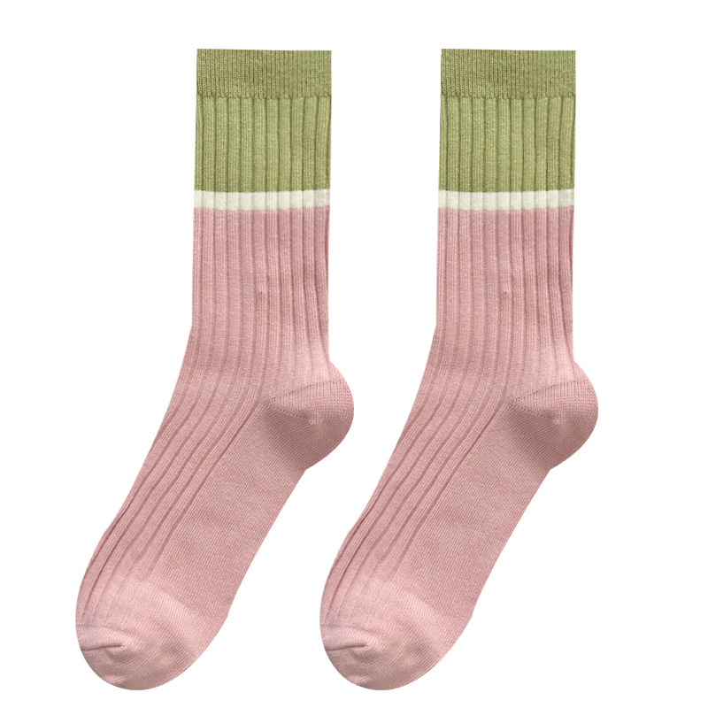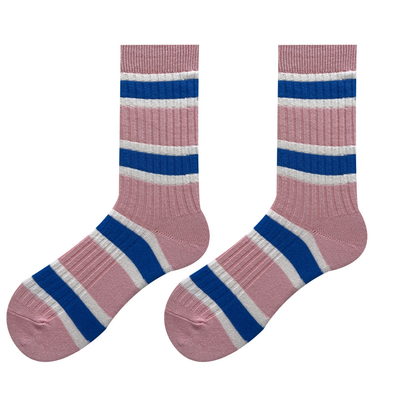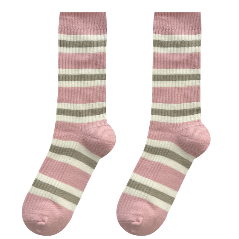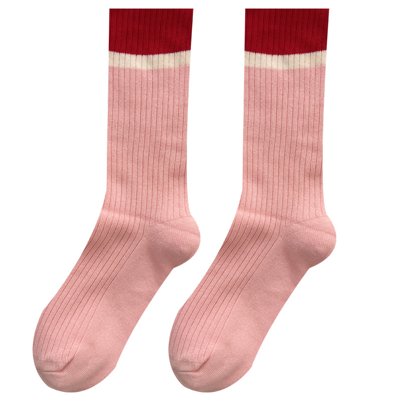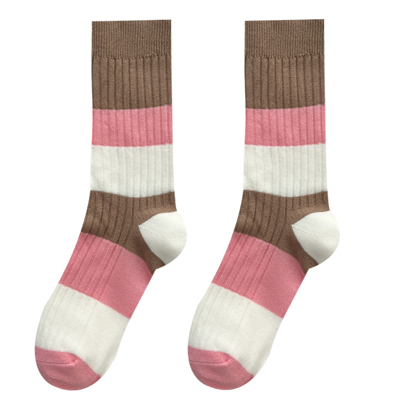 도파민 양말 여성용 중간 배럴 대조 색상 일본 스타일 유행 양말 봄과 가을 천 라벨 줄무늬 한국식 스택 양말 스타킹스토어 가기