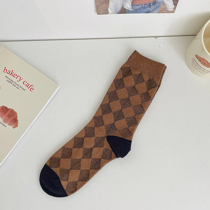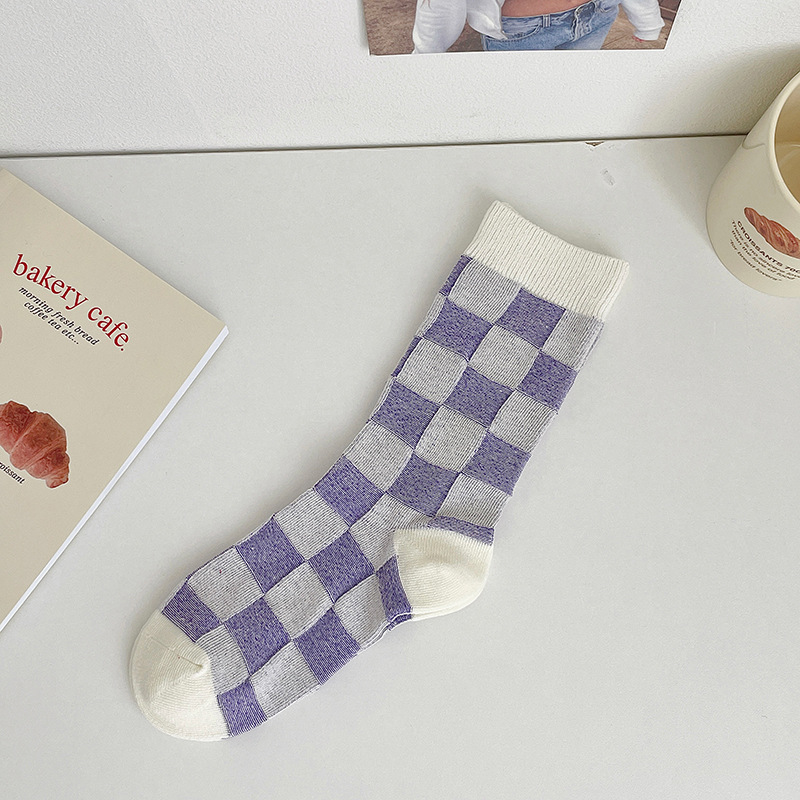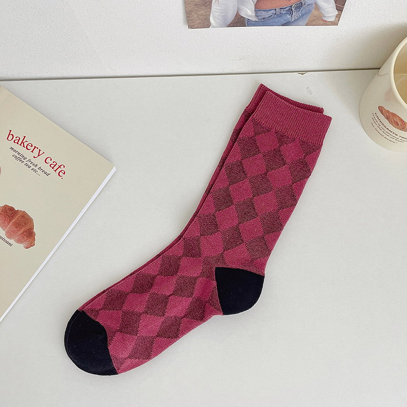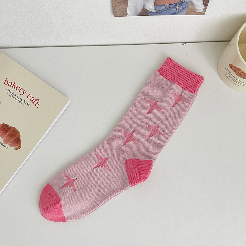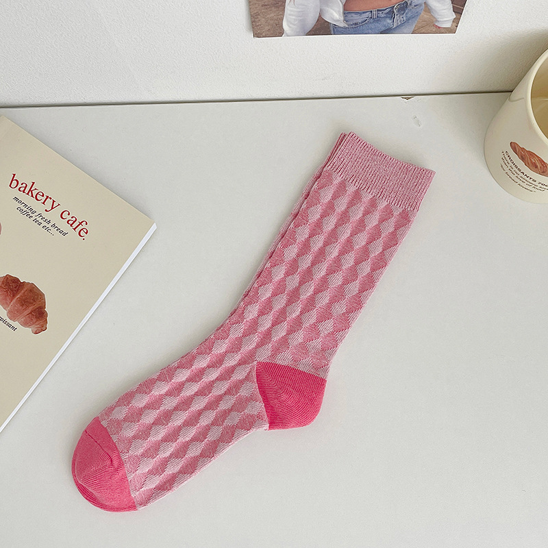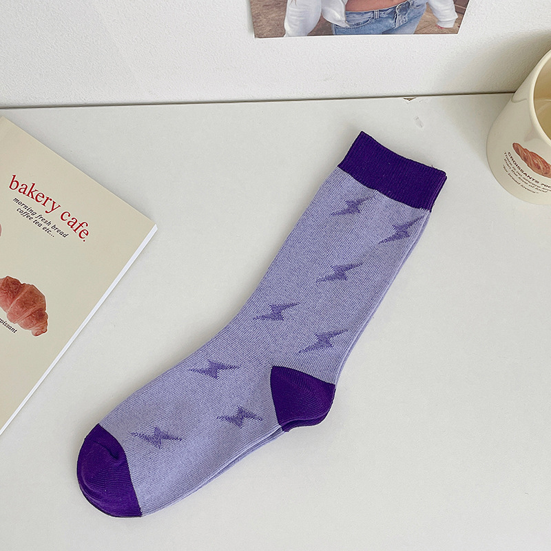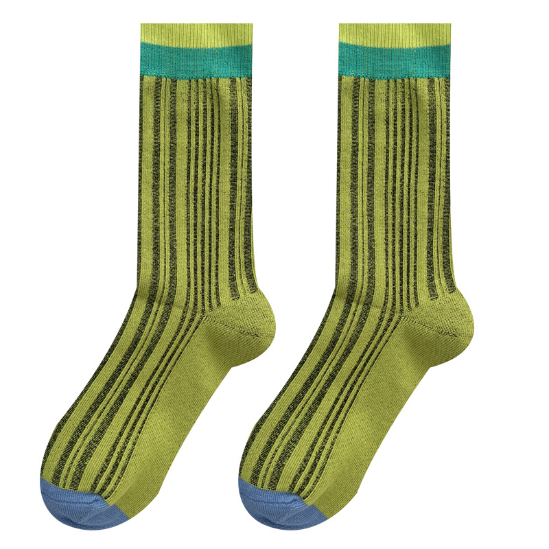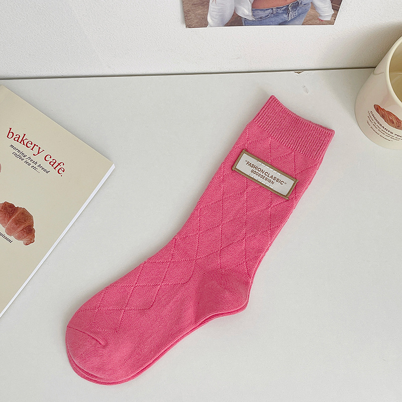 도파민 양말 여성용 중간 배럴 대조 색상 일본 스타일 유행 양말 봄과 가을 천 라벨 줄무늬 한국식 스택 양말 스타킹스토어 가기