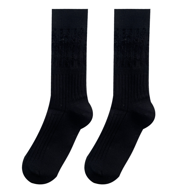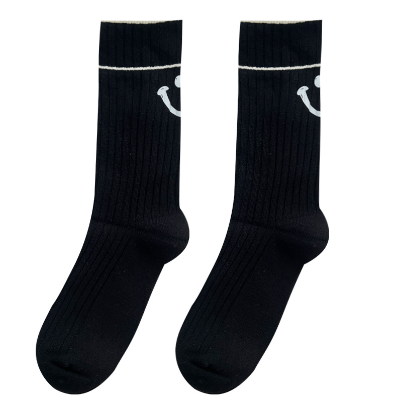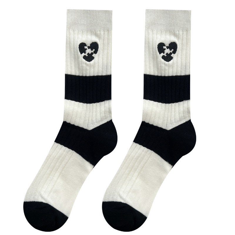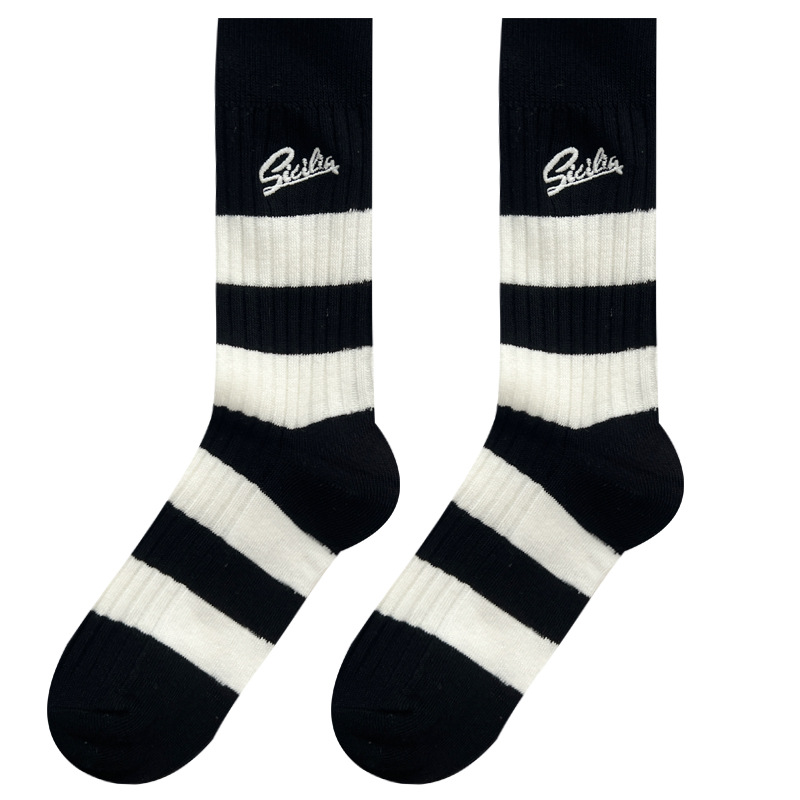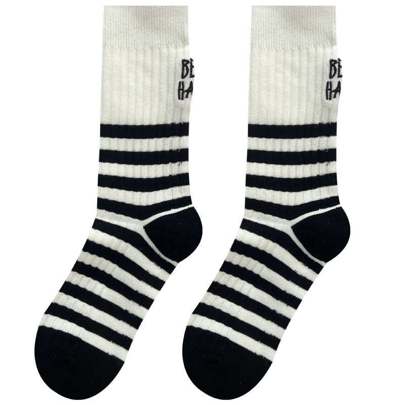 도파민 양말 여성용 중간 배럴 대조 색상 일본 스타일 유행 양말 봄과 가을 천 라벨 줄무늬 한국식 스택 양말 스타킹