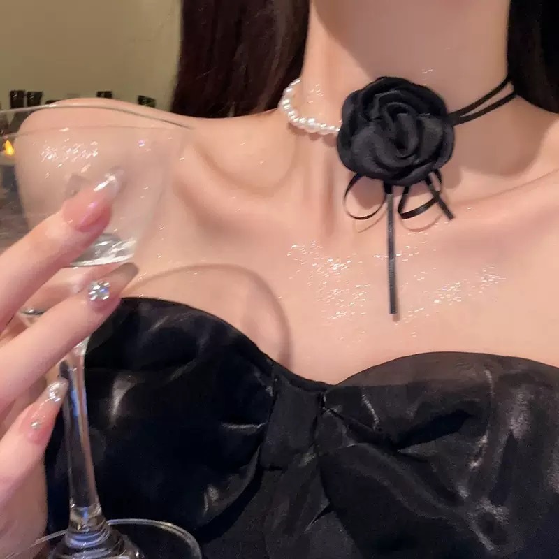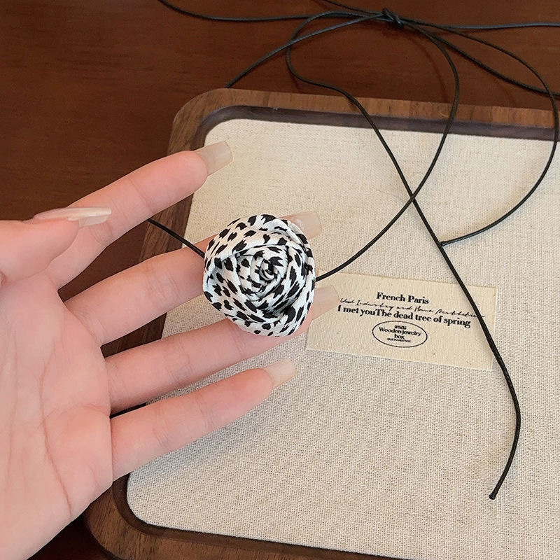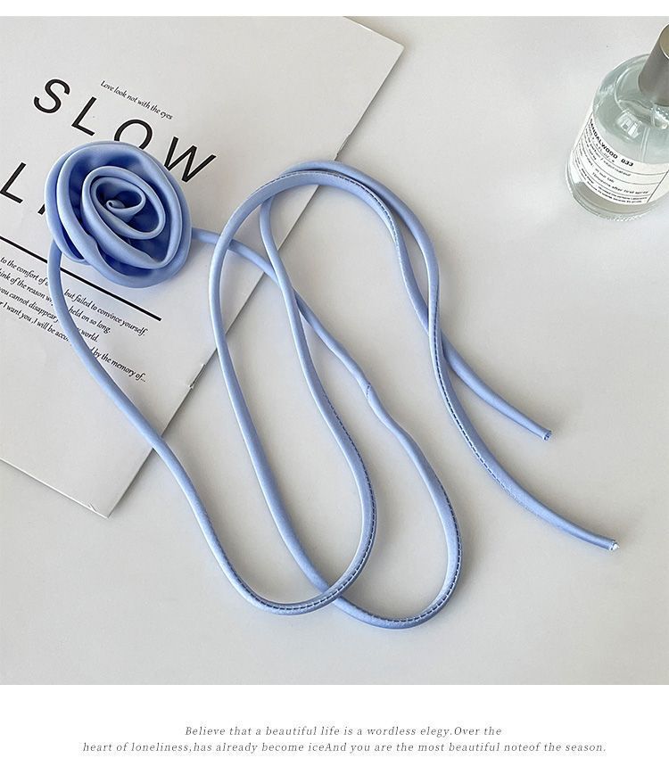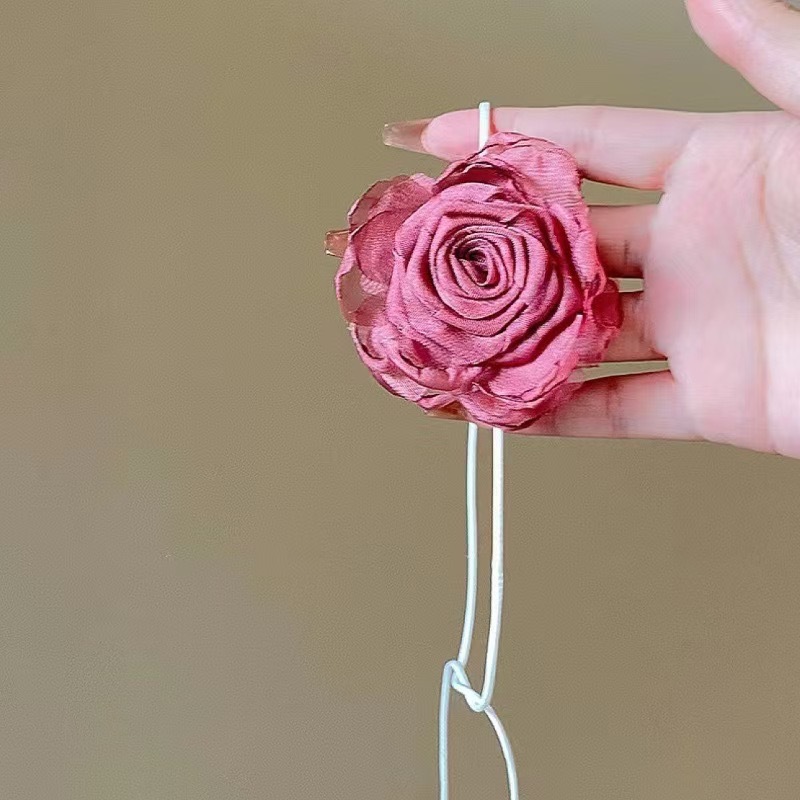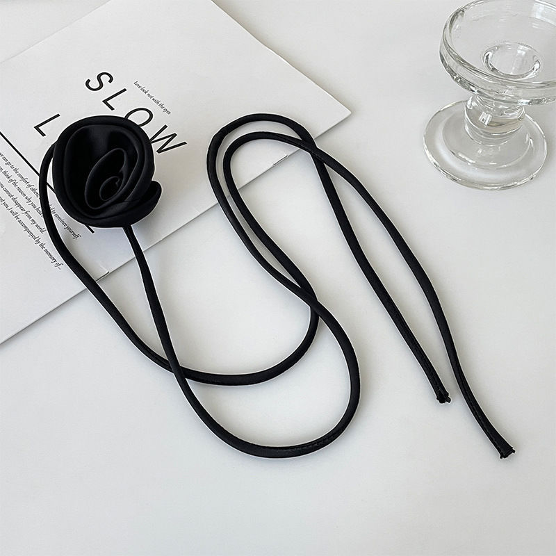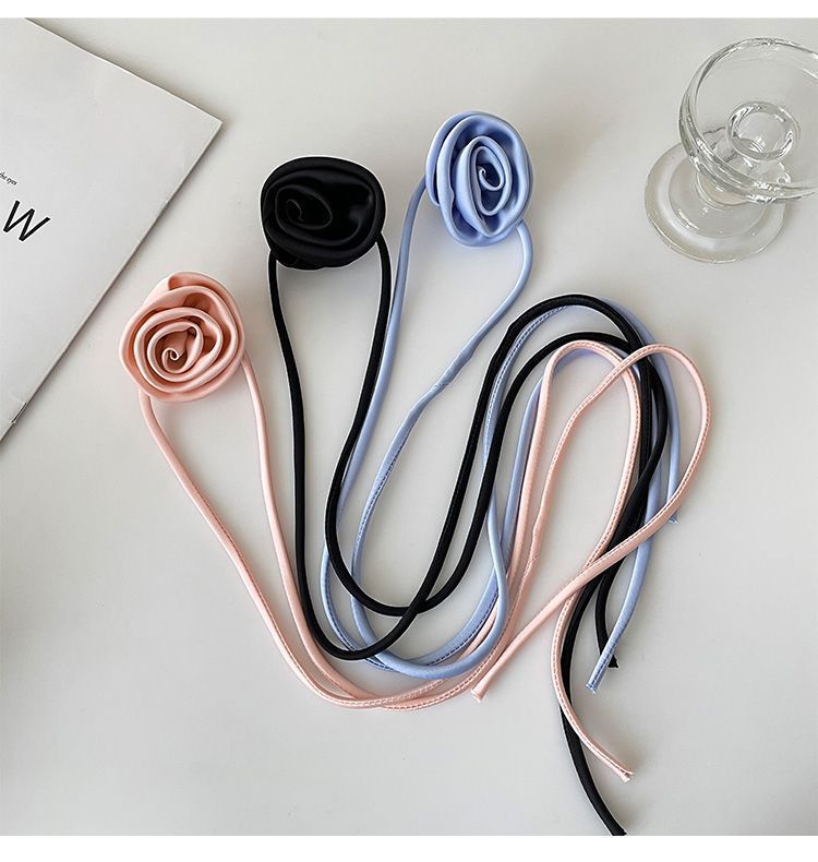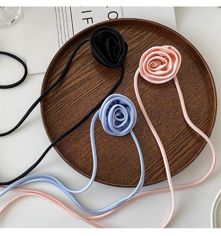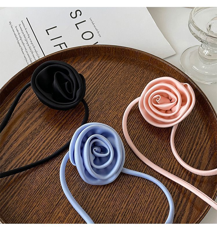 한국 블로거와 같은 스타일의 고급 새틴 넥 플라워 3D 플라워 초커 초커 넥 로즈 목걸이 액세서리스토어 가기