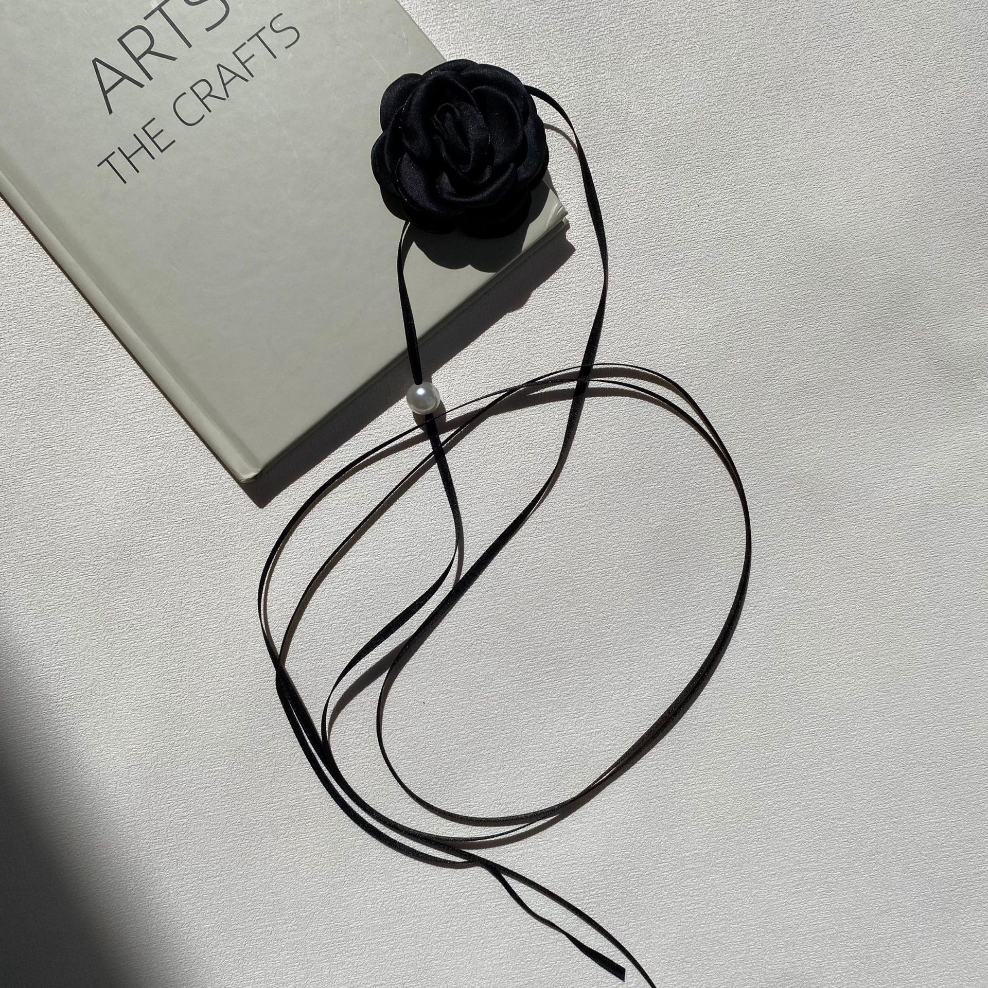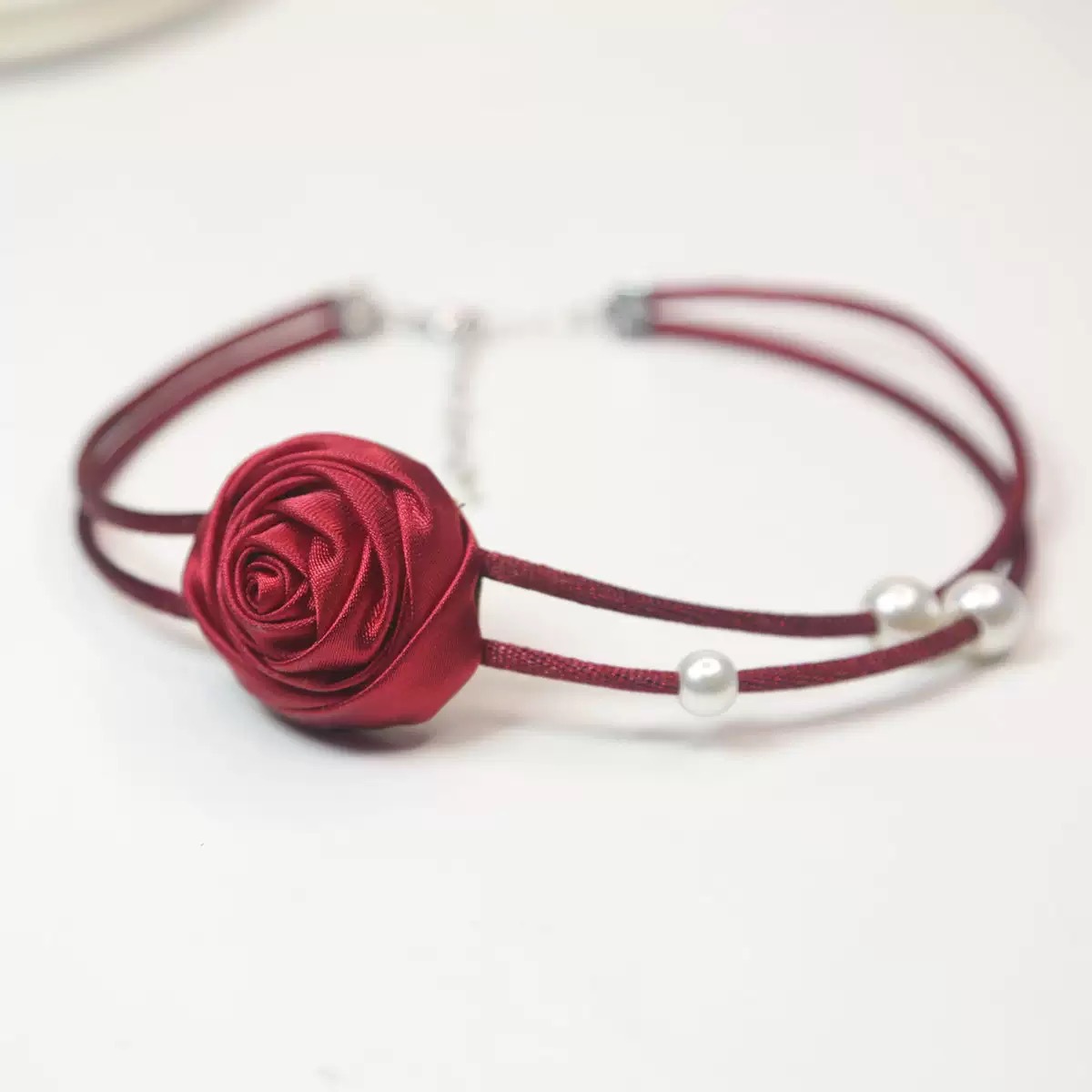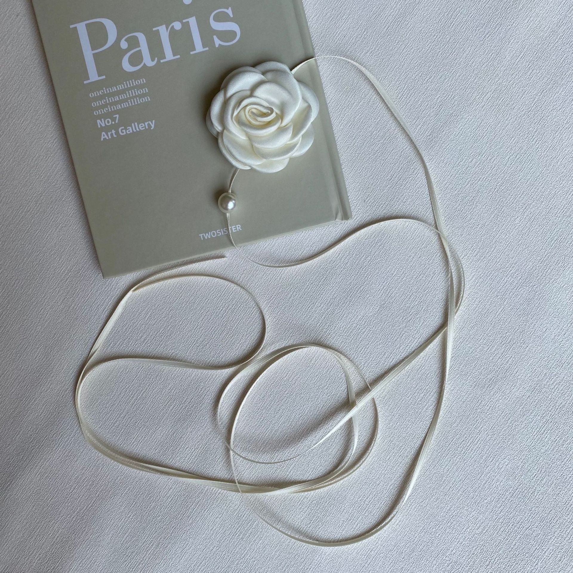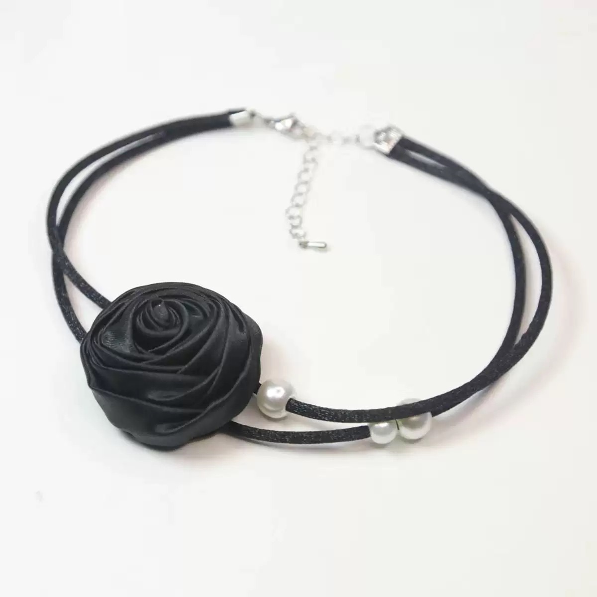 한국 블로거와 같은 스타일의 고급 새틴 넥 플라워 3D 플라워 초커 초커 넥 로즈 목걸이 액세서리스토어 가기