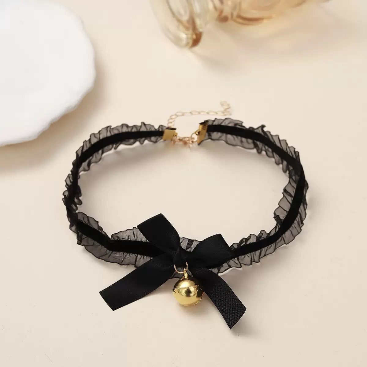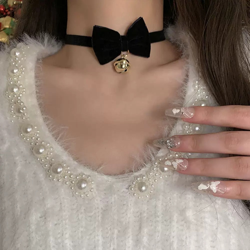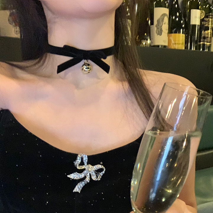 • 검은 나비 리본 방울 쇄골 체인