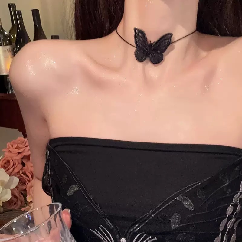 • 낚시 라인 블랙 나비 목걸이