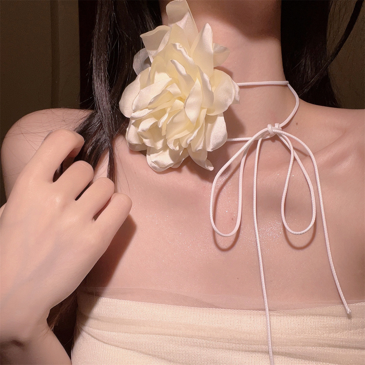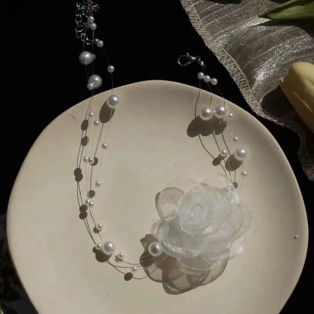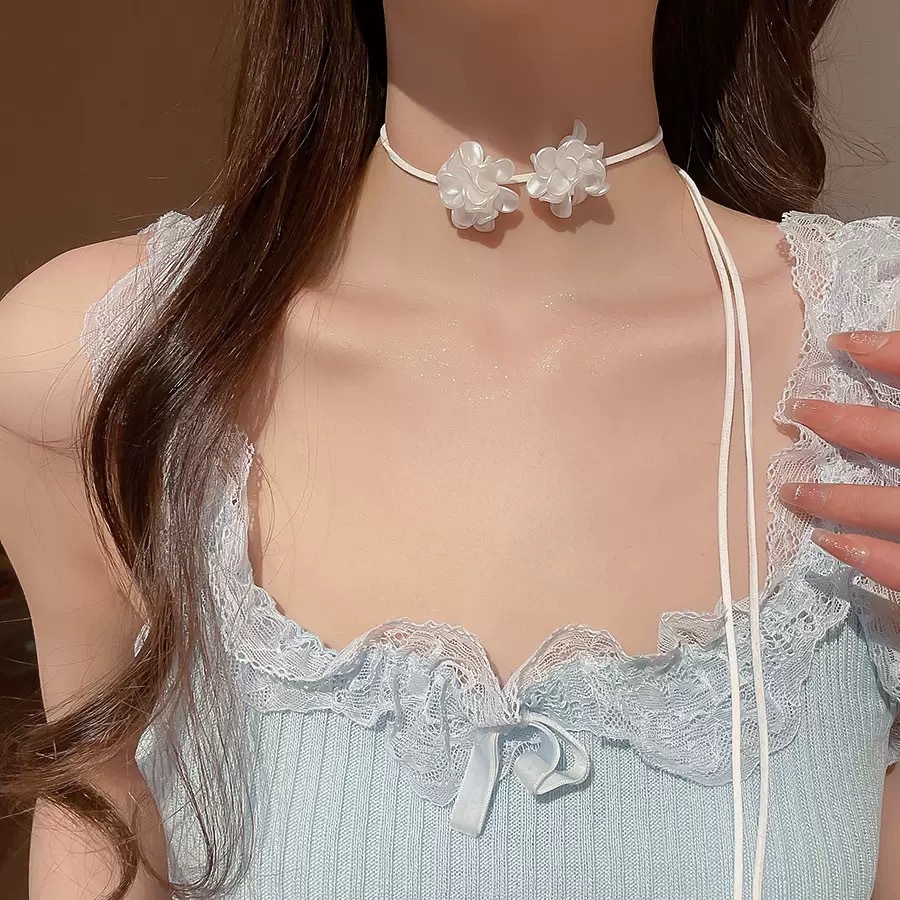 • 거즈 반투명 꽃 넥 체인