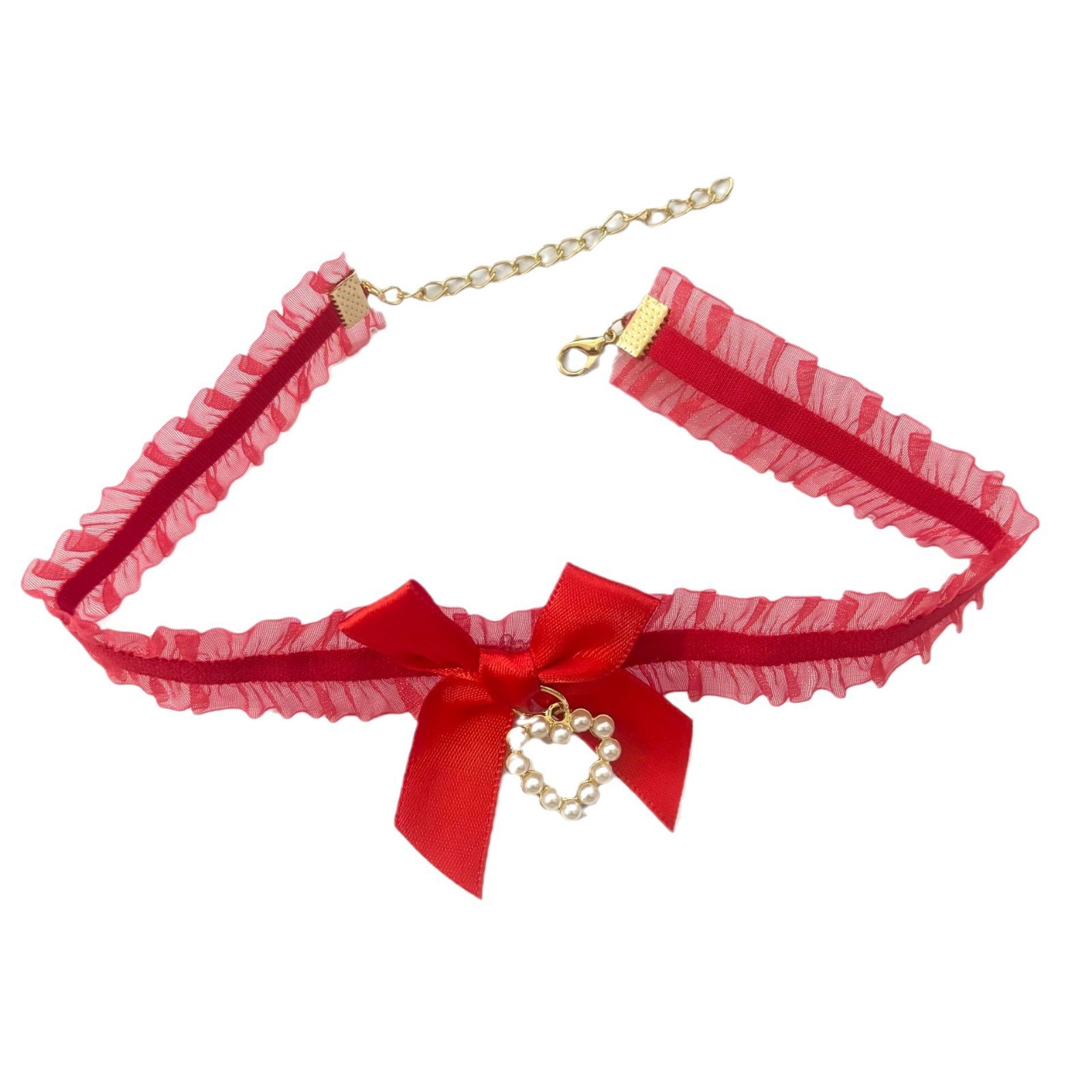 • 붉은 진주 사랑 활 목걸이