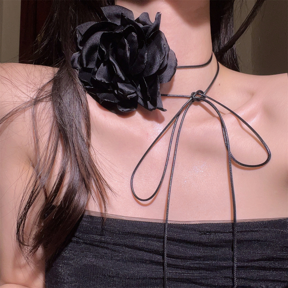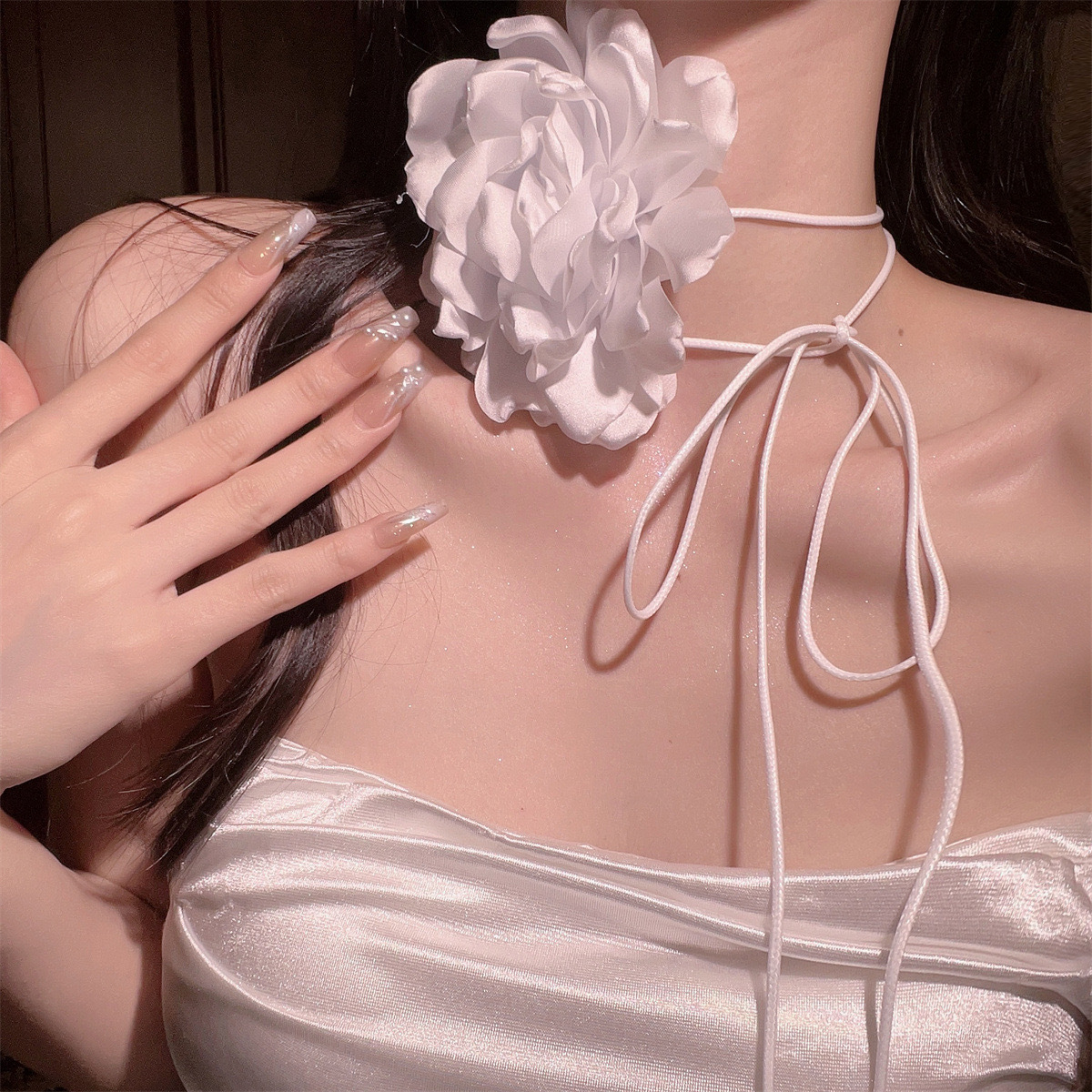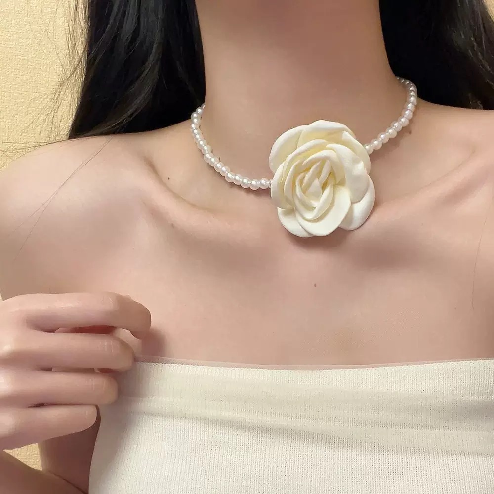 한국 블로거와 같은 스타일의 고급 새틴 넥 플라워 3D 플라워 초커 초커 넥 로즈 목걸이 액세서리