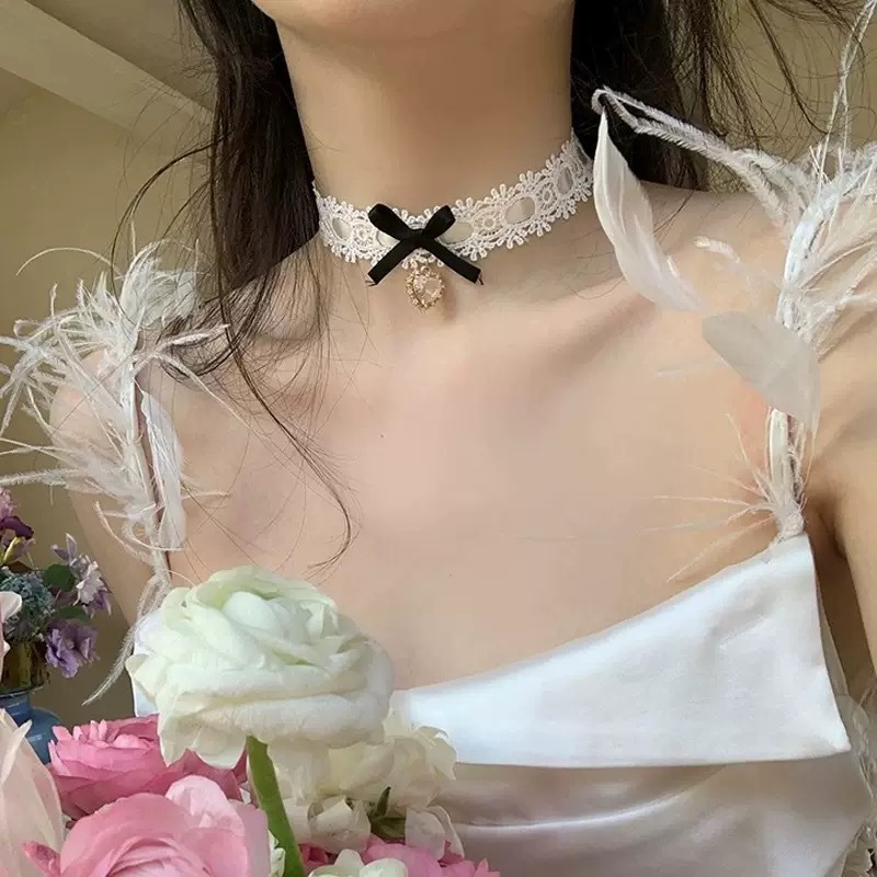 • 블랙 레이스 활 목걸이