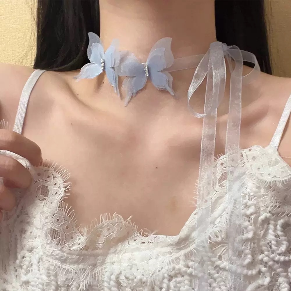 • 낚싯줄 블루 나비 목걸이