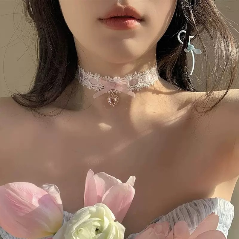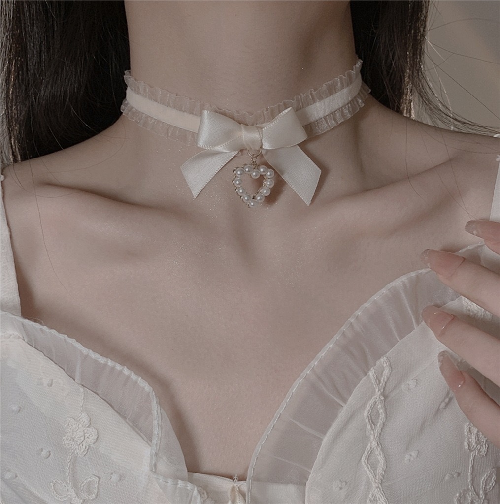 • 화이트 레이스 보우 목걸이