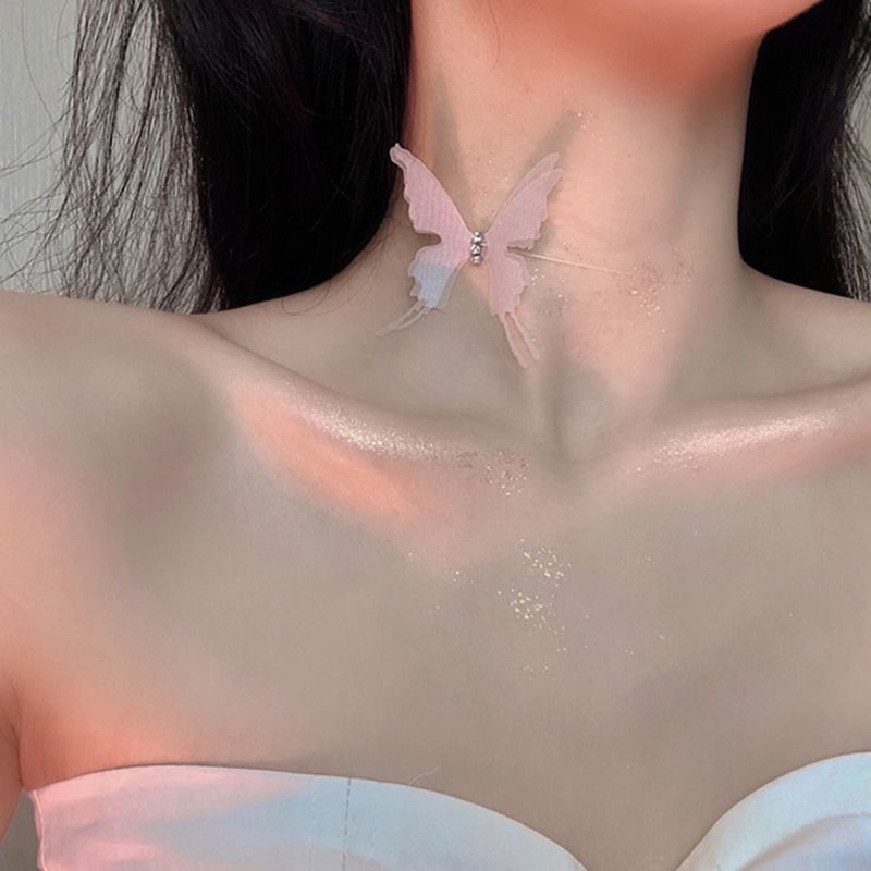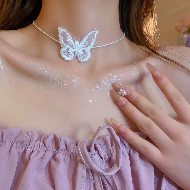 • 낚시 라인 화이트 나비 목걸이