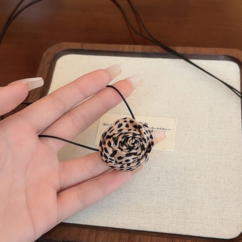 • 브라운 레오파드 프린트 로즈 목걸이