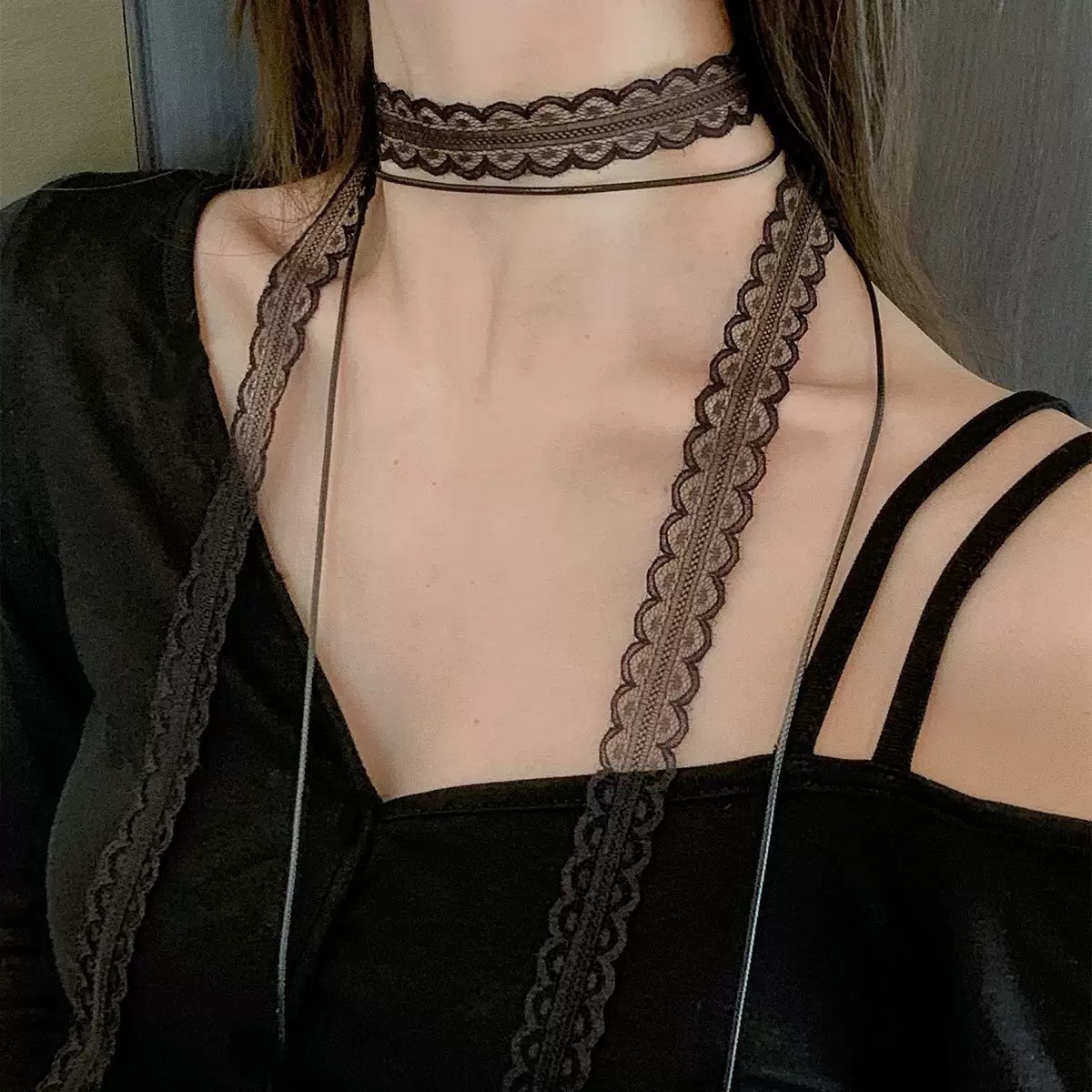 • 블랙 레이스 스트랩 목걸이
