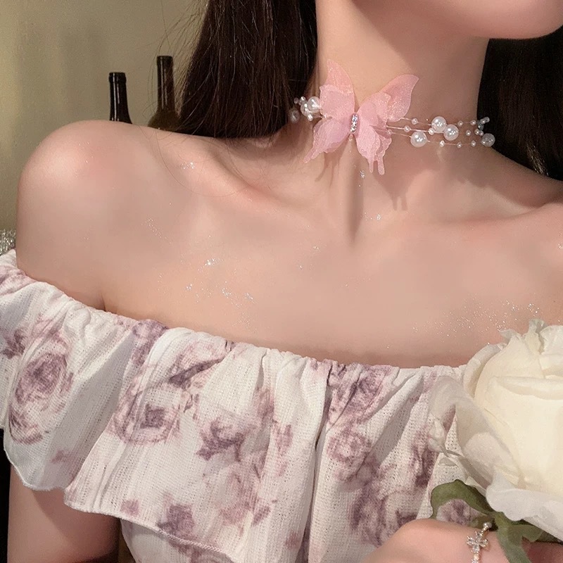 • 핑크 나비 진주 목걸이