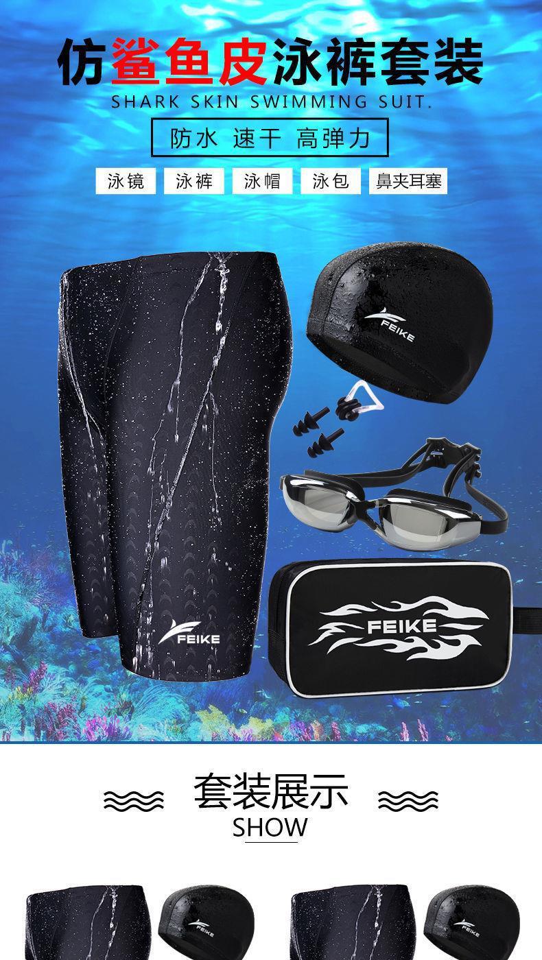 수영 트렁크 남자의 5 점 속건 수영 트렁크 남자의 방수 수영복 수영 장비 모조 상어 피부 수영 모자 수영 고글 세트스토어 가기