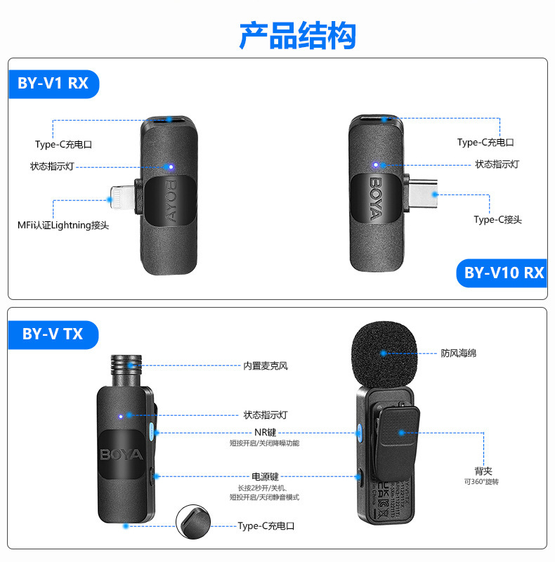 BOYA BY-V20 1-2 무선 마이크-BY-V1-BY-V2-BY-V10 라발리에 마이크스토어 가기