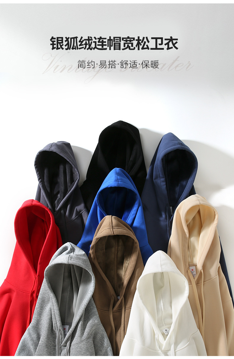 420g 기모 후드 스웨터 남자와 여자의 면 합성 실버 폭스 캐시미어 모자 재킷 청소년 홍콩 까마귀