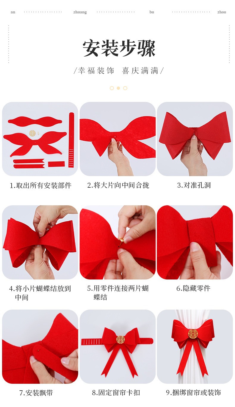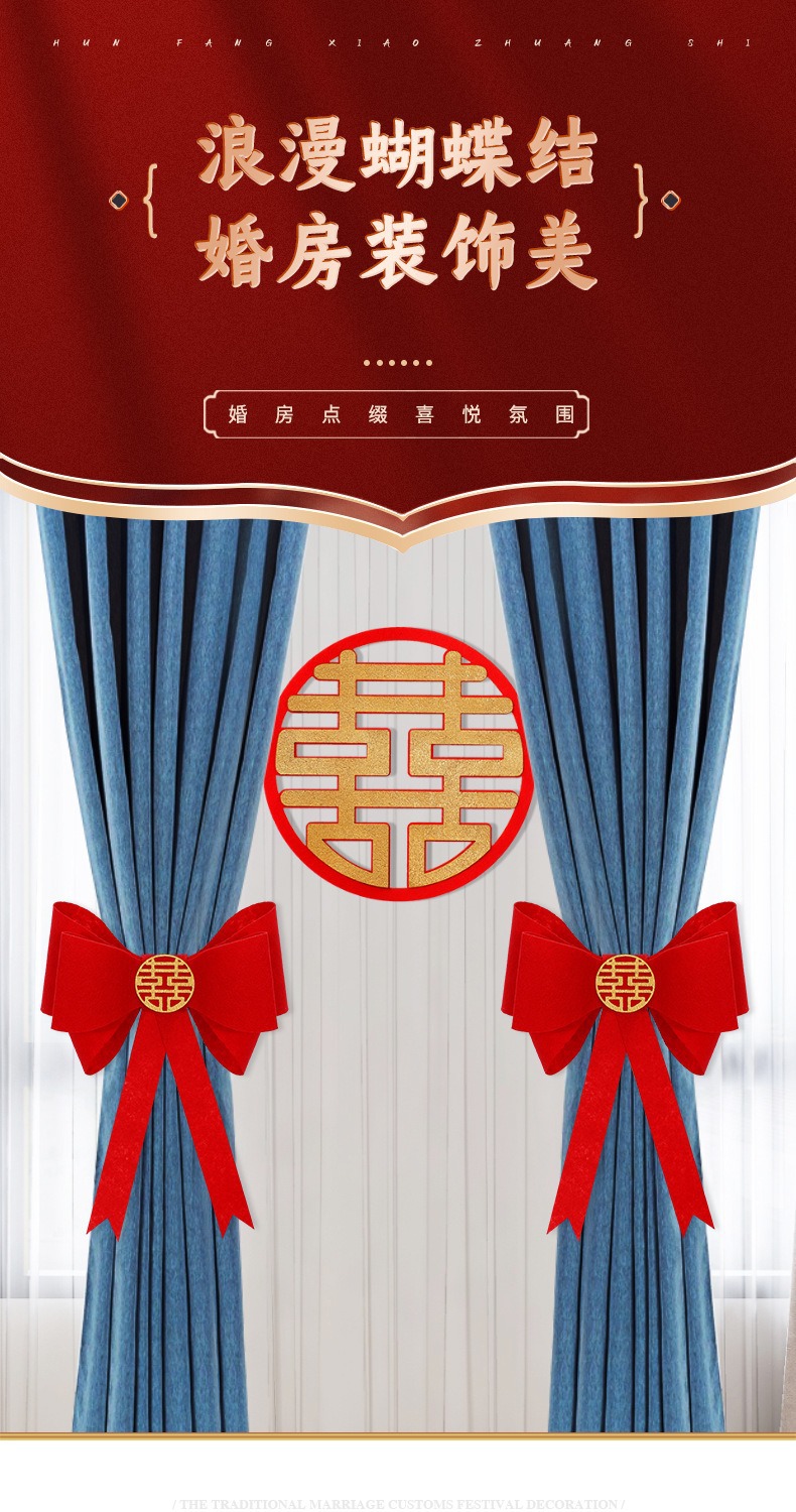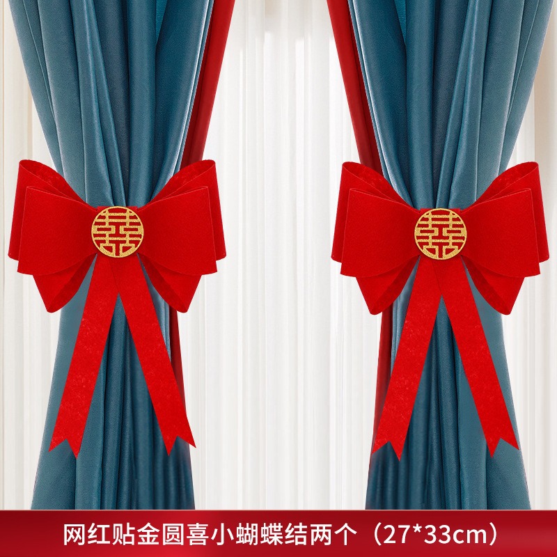 그물 빨간 결혼식 방 침실 거실 빨간 활 커튼 끈 새로운 집 장식 결혼식 용품
