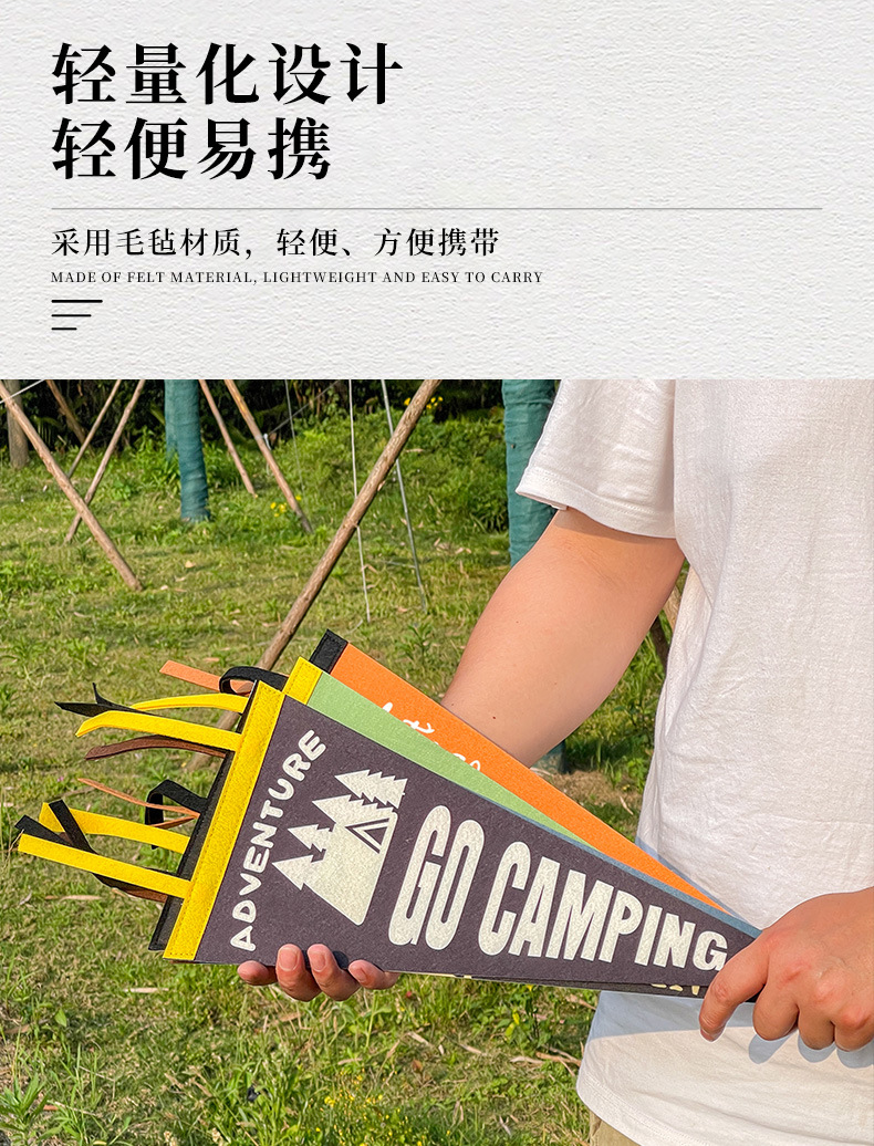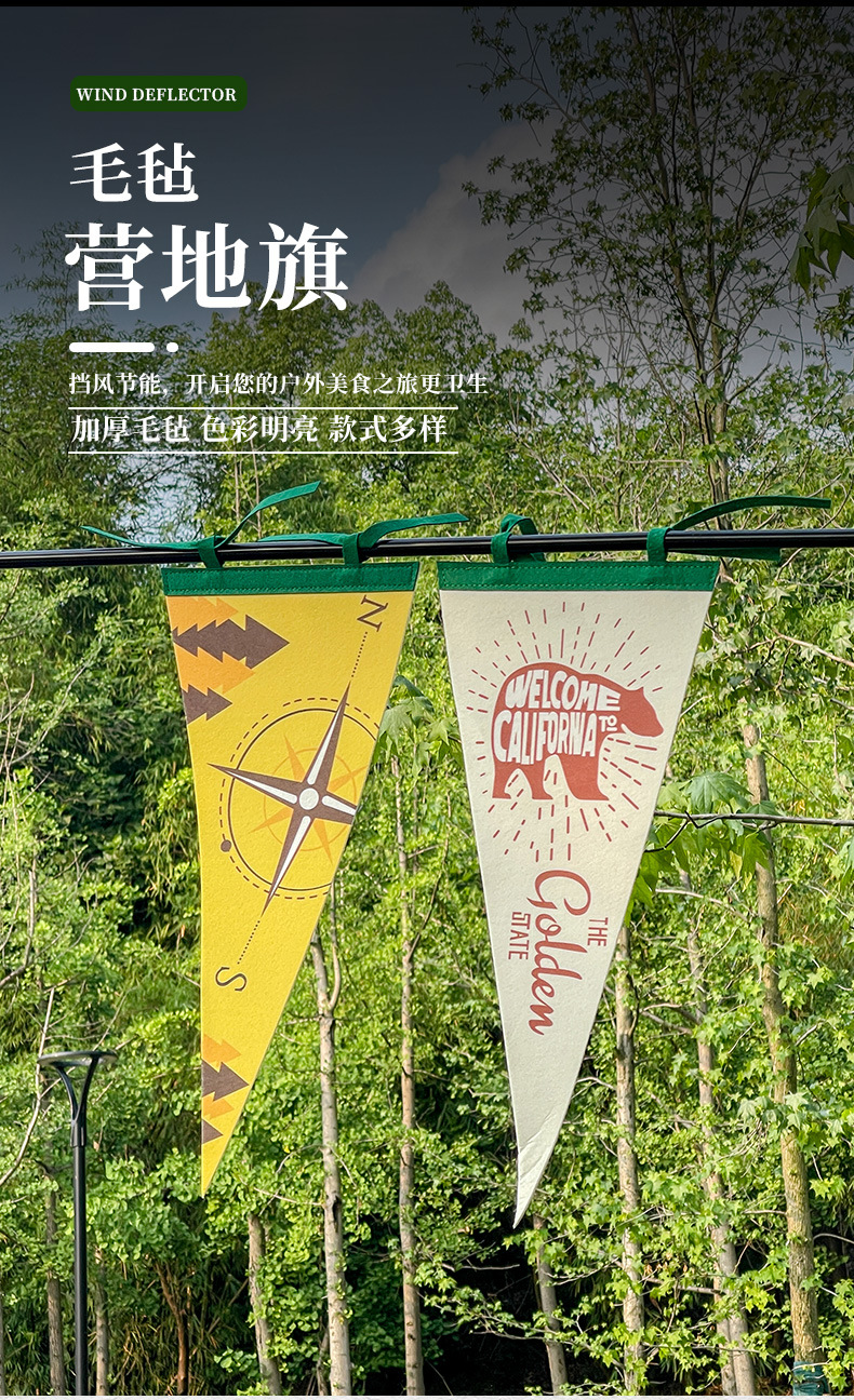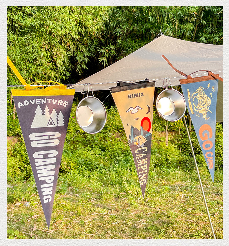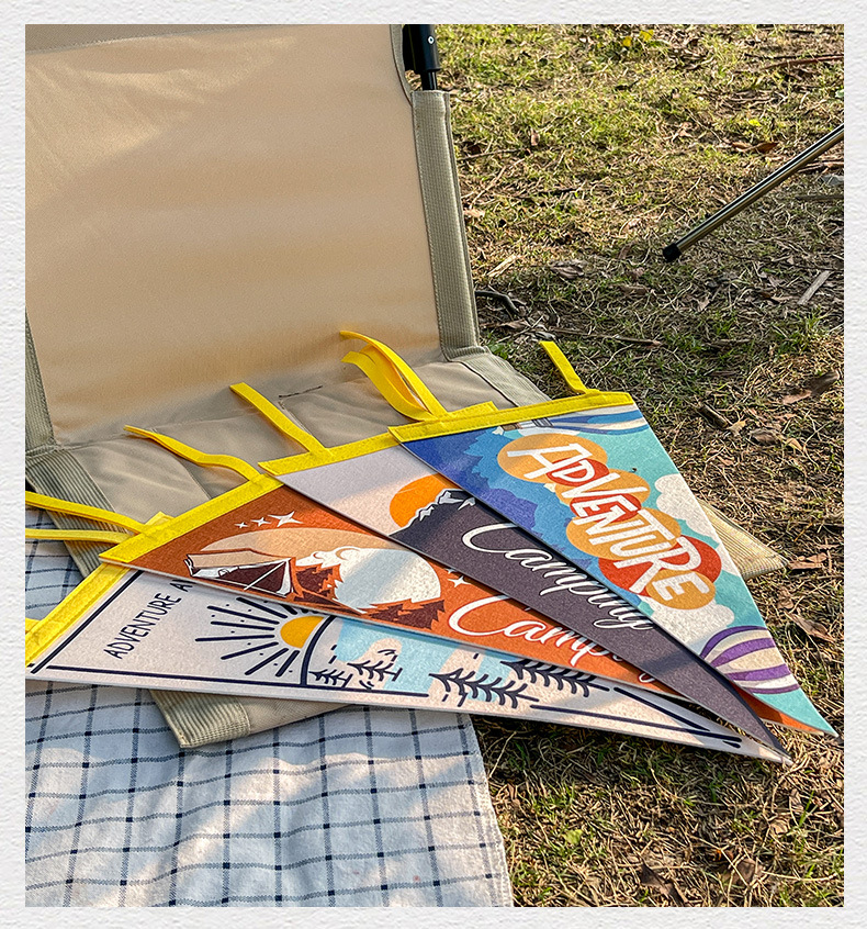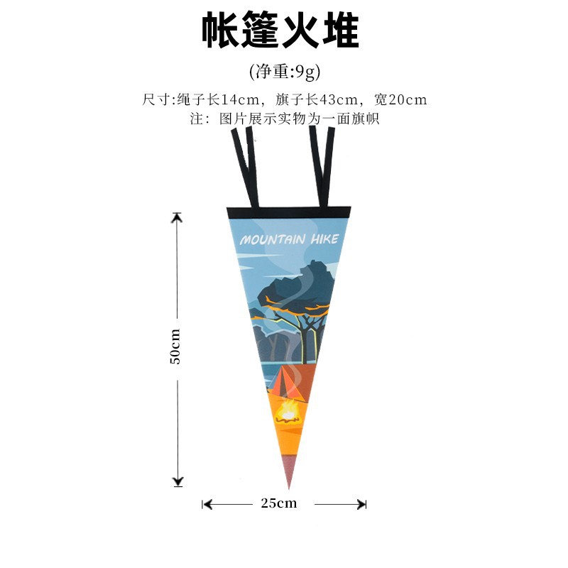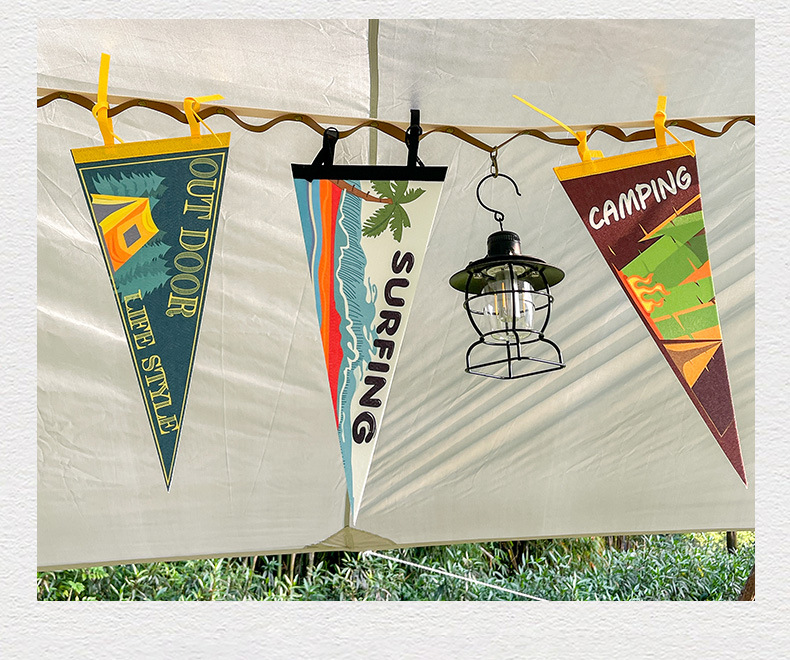 캠핑 분위기 깃발 야외 캠프 깃발 캠핑 장식 방패 깃발 텐트 캐노피 바람 로프 삼각형 끈 깃발 매달려 깃발