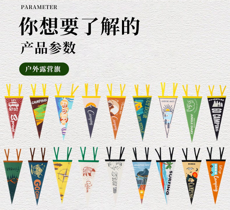 캠핑 분위기 깃발 야외 캠프 깃발 캠핑 장식 방패 깃발 텐트 캐노피 바람 로프 삼각형 끈 깃발 매달려 깃발스토어 가기