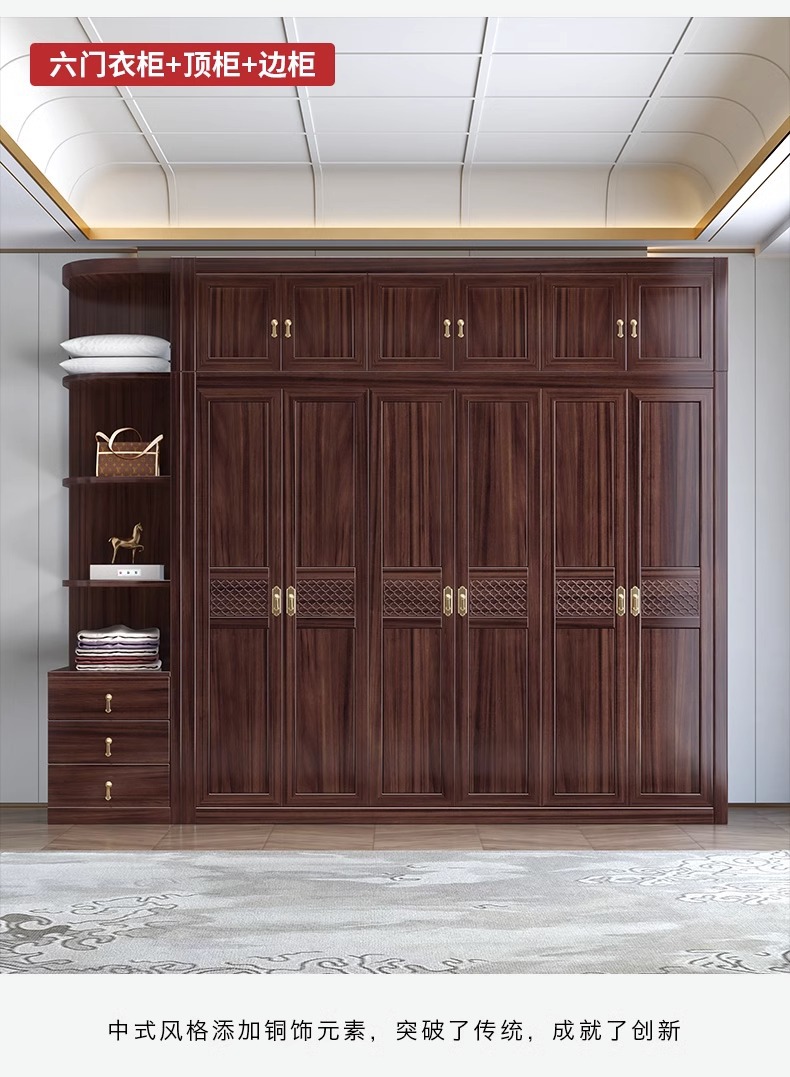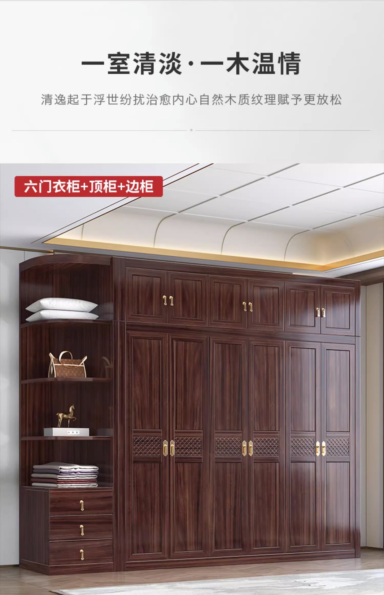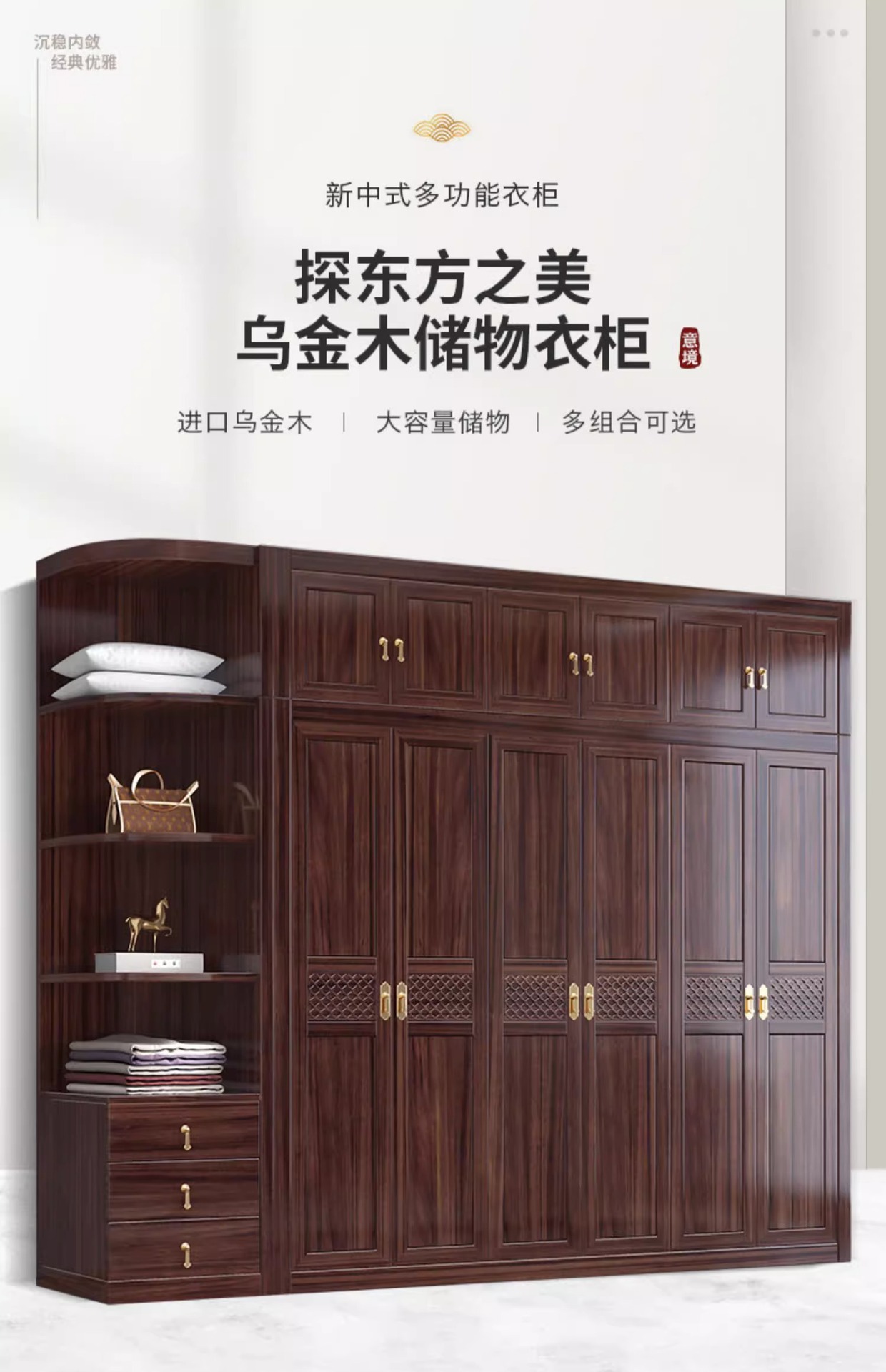 새로운 중국 스타일 흑단 나무 전체 단단한 나무 옷장 홈 스토리지 크고 작은 아파트 현대 간단한 마스터 침실 옷장