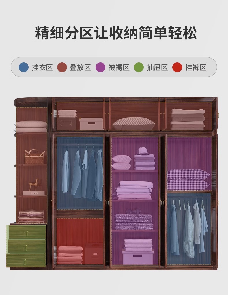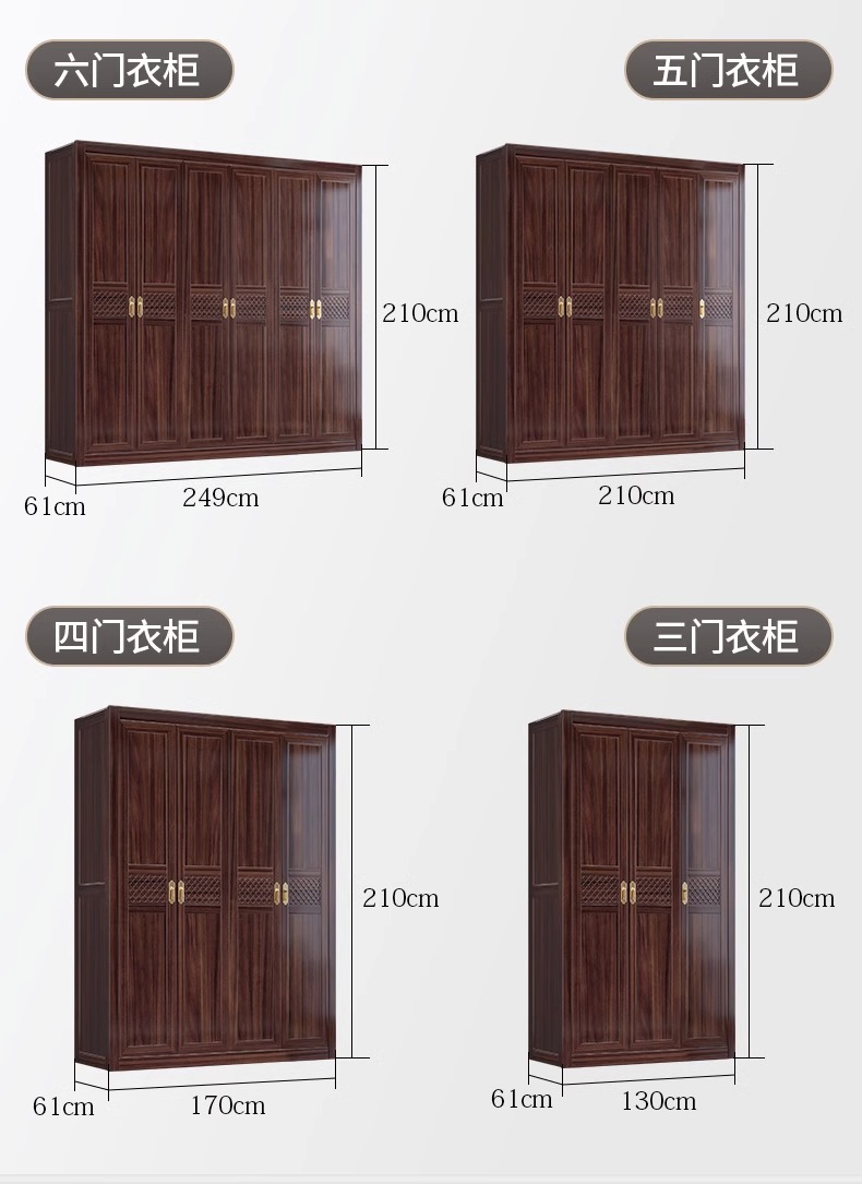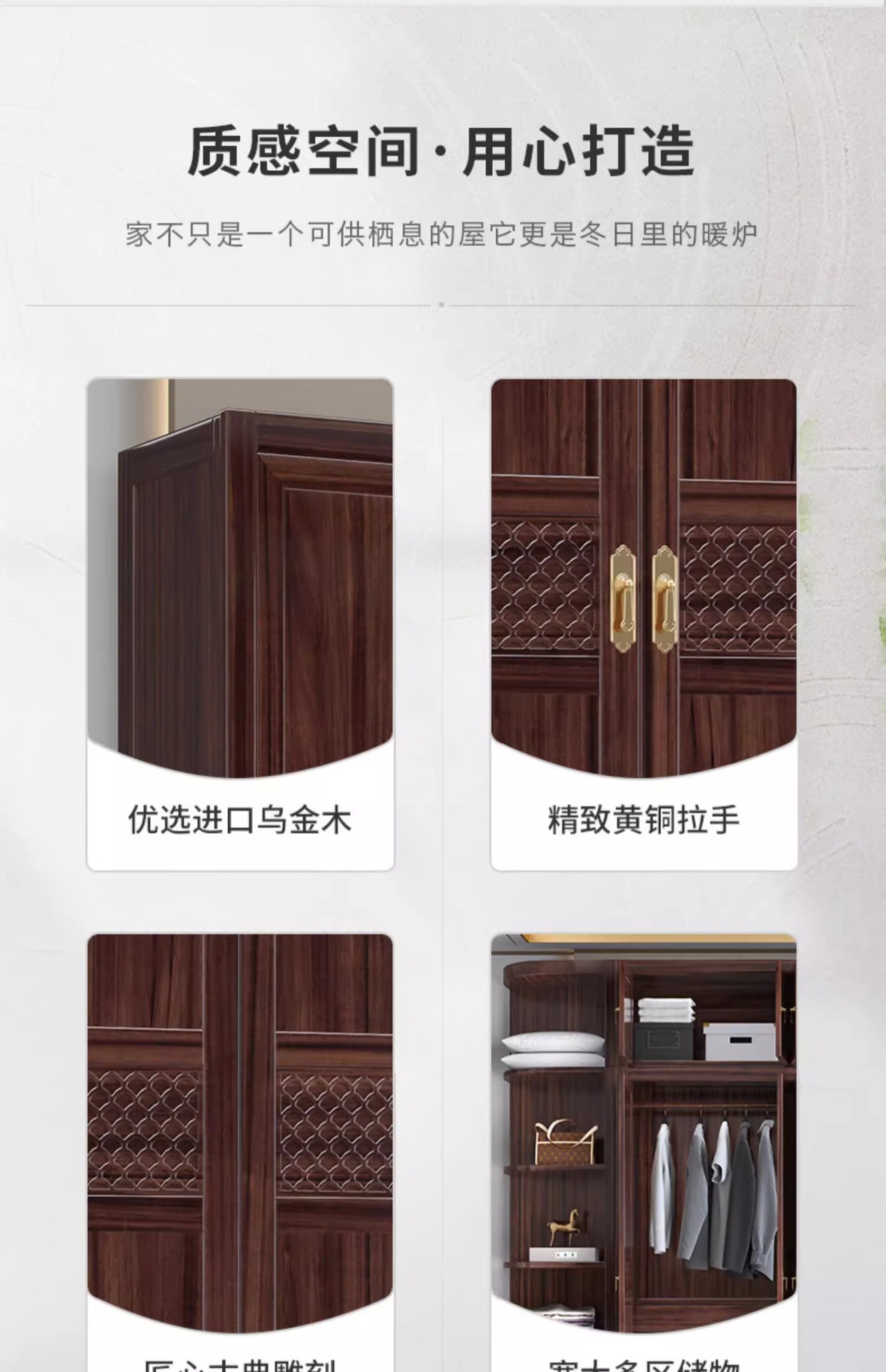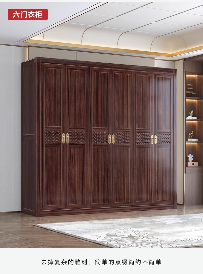 새로운 중국 스타일 흑단 나무 전체 단단한 나무 옷장 홈 스토리지 크고 작은 아파트 현대 간단한 마스터 침실 옷장
