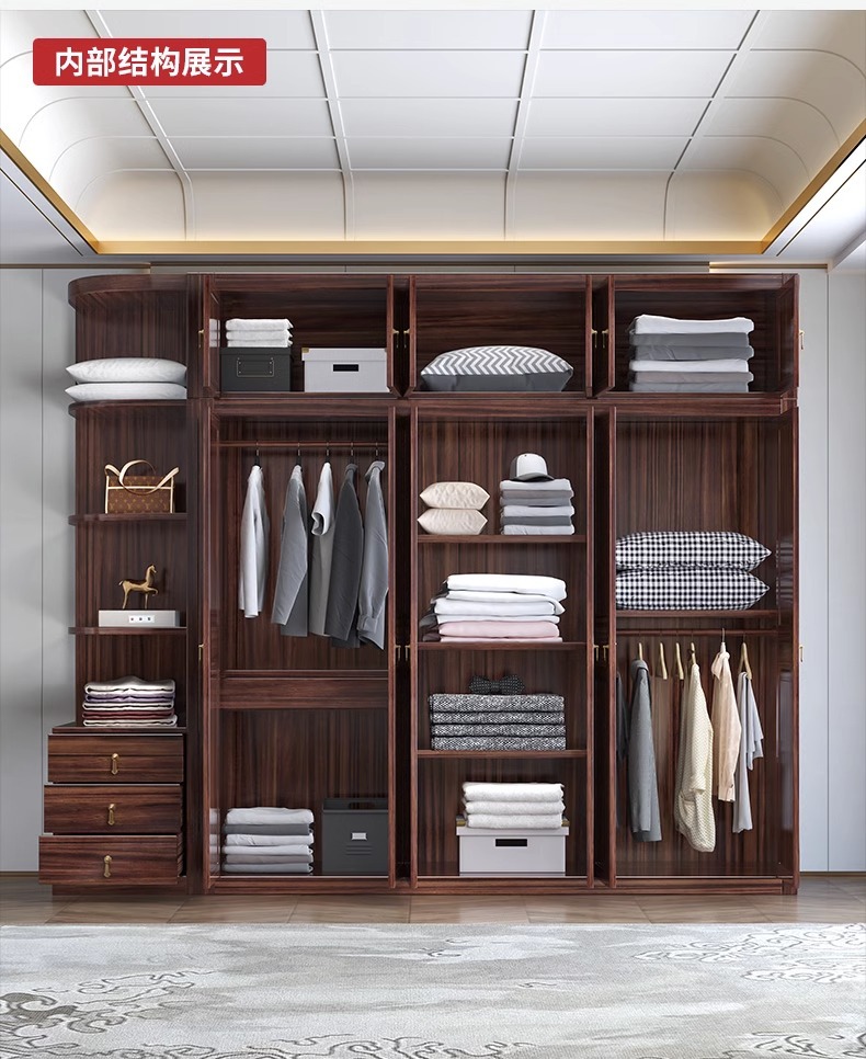 새로운 중국 스타일 흑단 나무 전체 단단한 나무 옷장 홈 스토리지 크고 작은 아파트 현대 간단한 마스터 침실 옷장스토어 가기