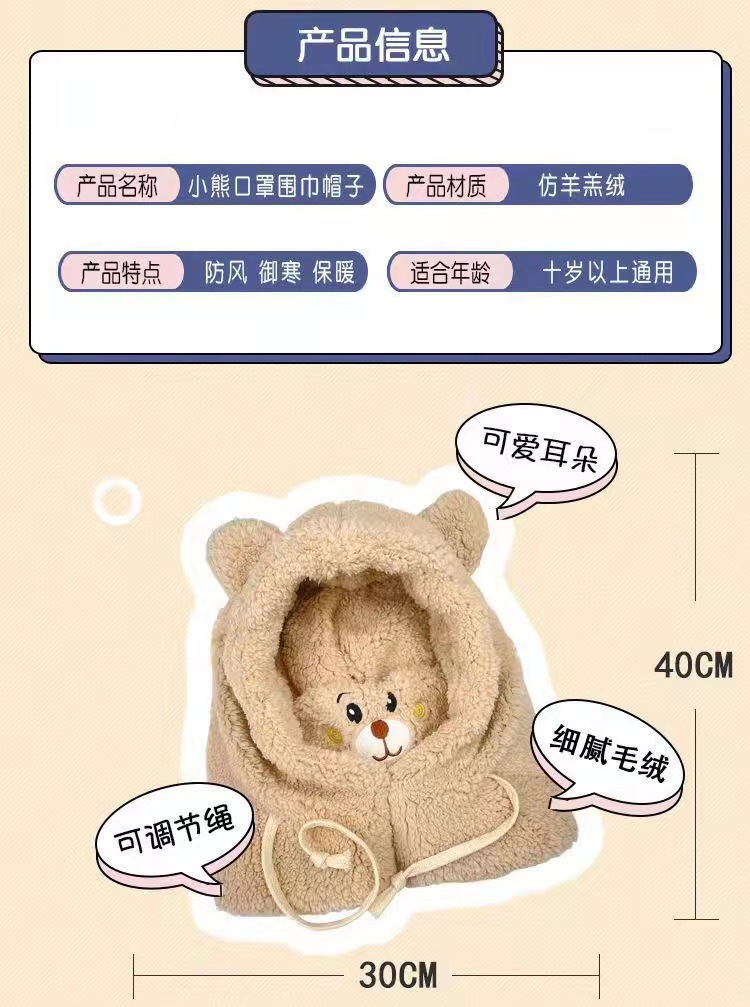 리틀 베어 모자 어린이 겨울 한국 스타일 귀여운 모든 매치 헤드 기어 사이클링 스카프 따뜻한 마스크 데이 스카프 통합 귀 보호스토어 가기