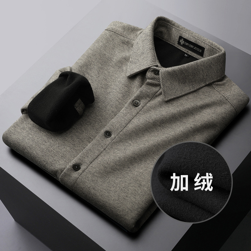 모조 모직 셔츠 긴팔 남성 가을 2025 벨벳 따뜻한 셔츠 간편한 케어 캐주얼 두꺼운 인치 셔츠 1688