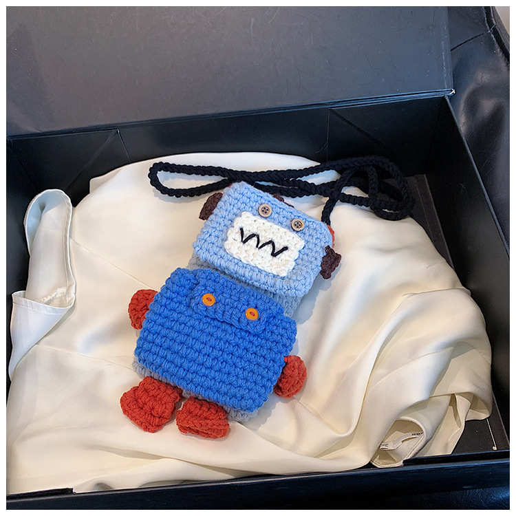 어린이 가방 가을과 겨울 새로운 못생긴 귀여운 로봇 울 가방 웨스턴 스타일 아기 손으로 짠 크로스 바디 백 동전 지갑 유행