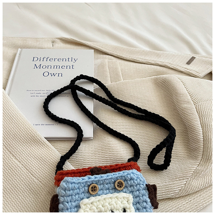 어린이 가방 가을과 겨울 새로운 못생긴 귀여운 로봇 울 가방 웨스턴 스타일 아기 손으로 짠 크로스 바디 백 동전 지갑 유행스토어 가기