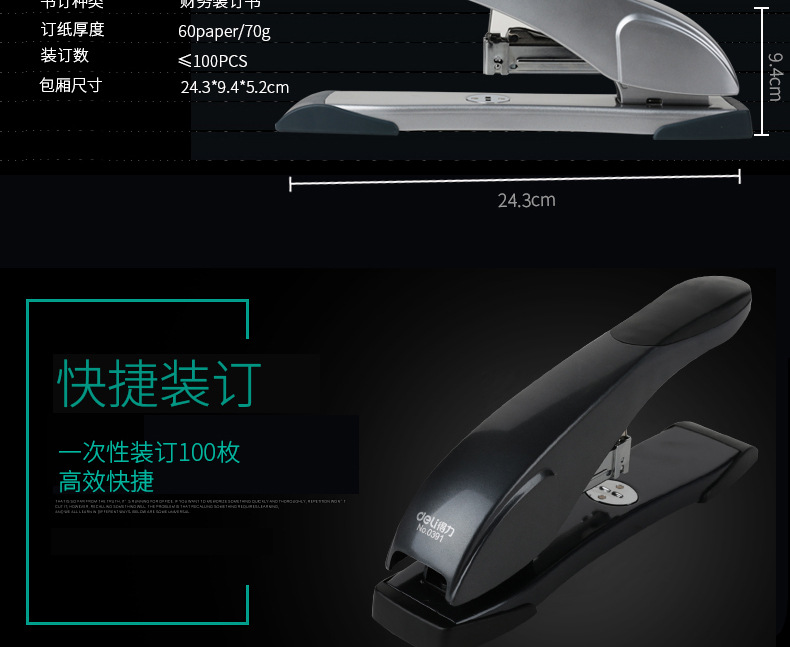 델리 0391 헤비 스테이플러 60 페이지 23/10 (혼합 색상) (대만) 두꺼운 노동 절약 금융 스테이플러