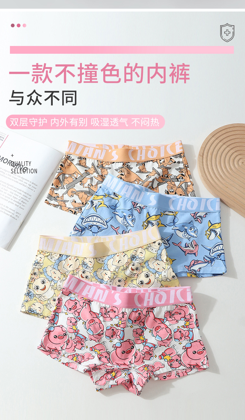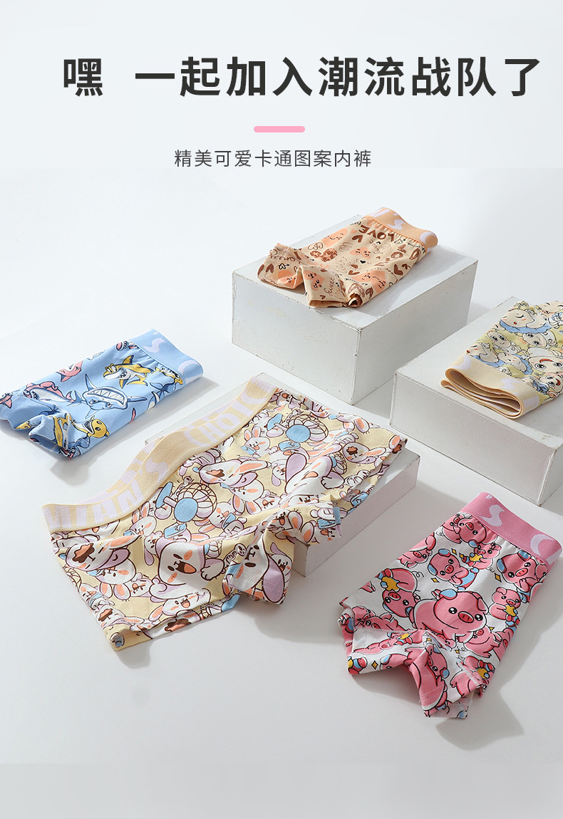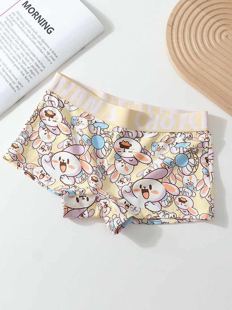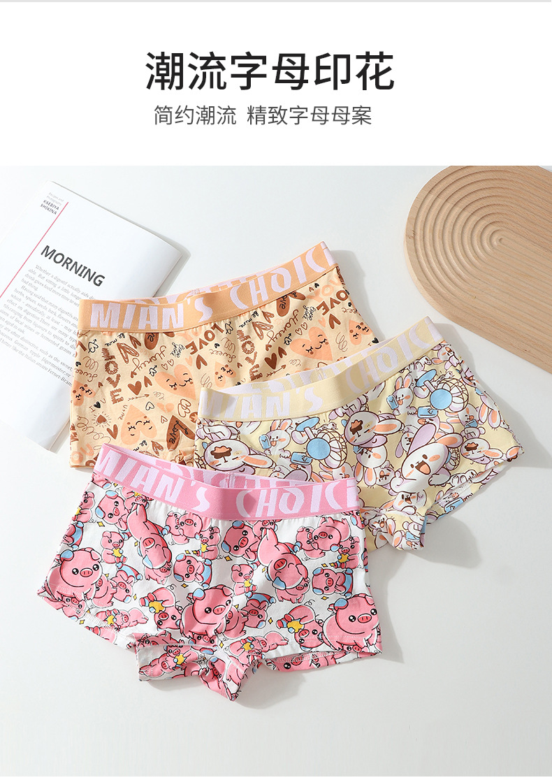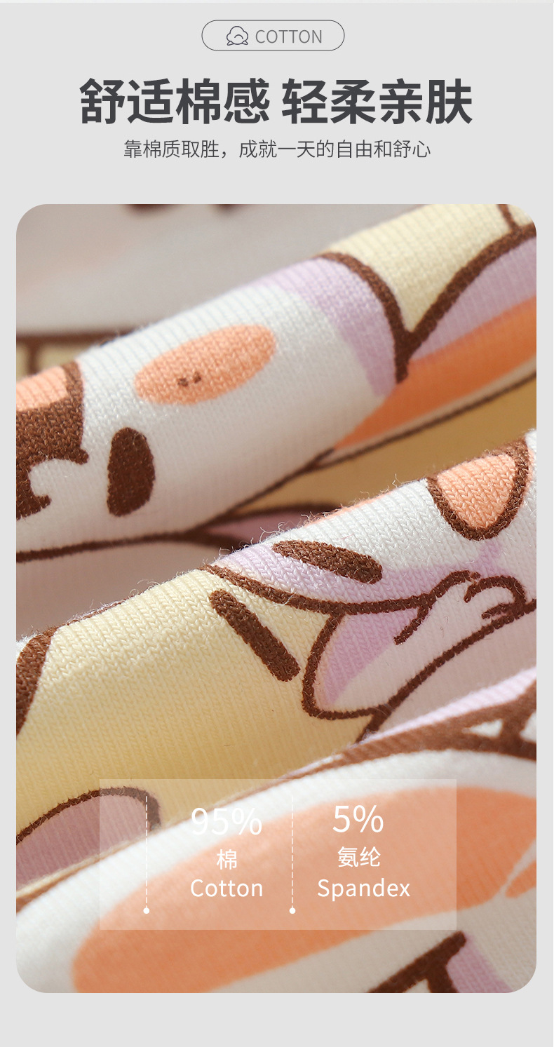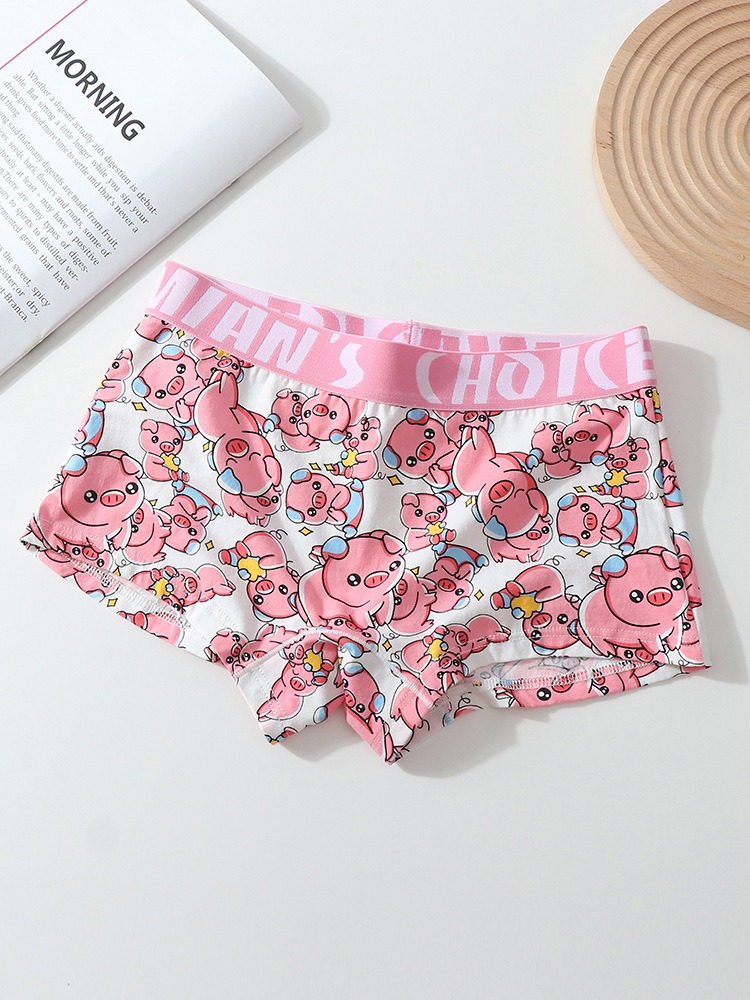 여성용 순면 사각팬티, 중간 허리, 스포츠용 통기성 만화 프린트 사각팬티, 학생용스토어 가기