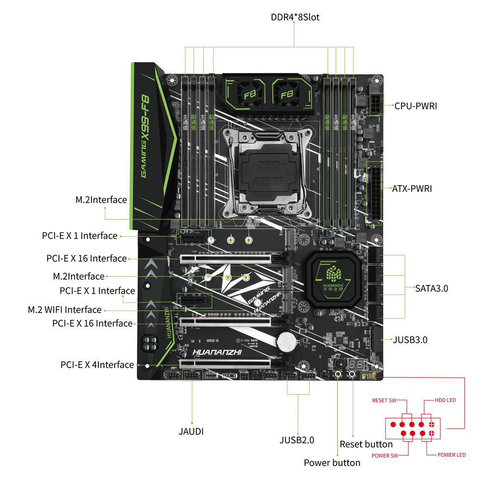 包装清单:X99F8主板*1 全新;2670V3 CPU*1(拆机); DDR4 REG ECC 8G*2 2133(拆机 外观颜色随机);